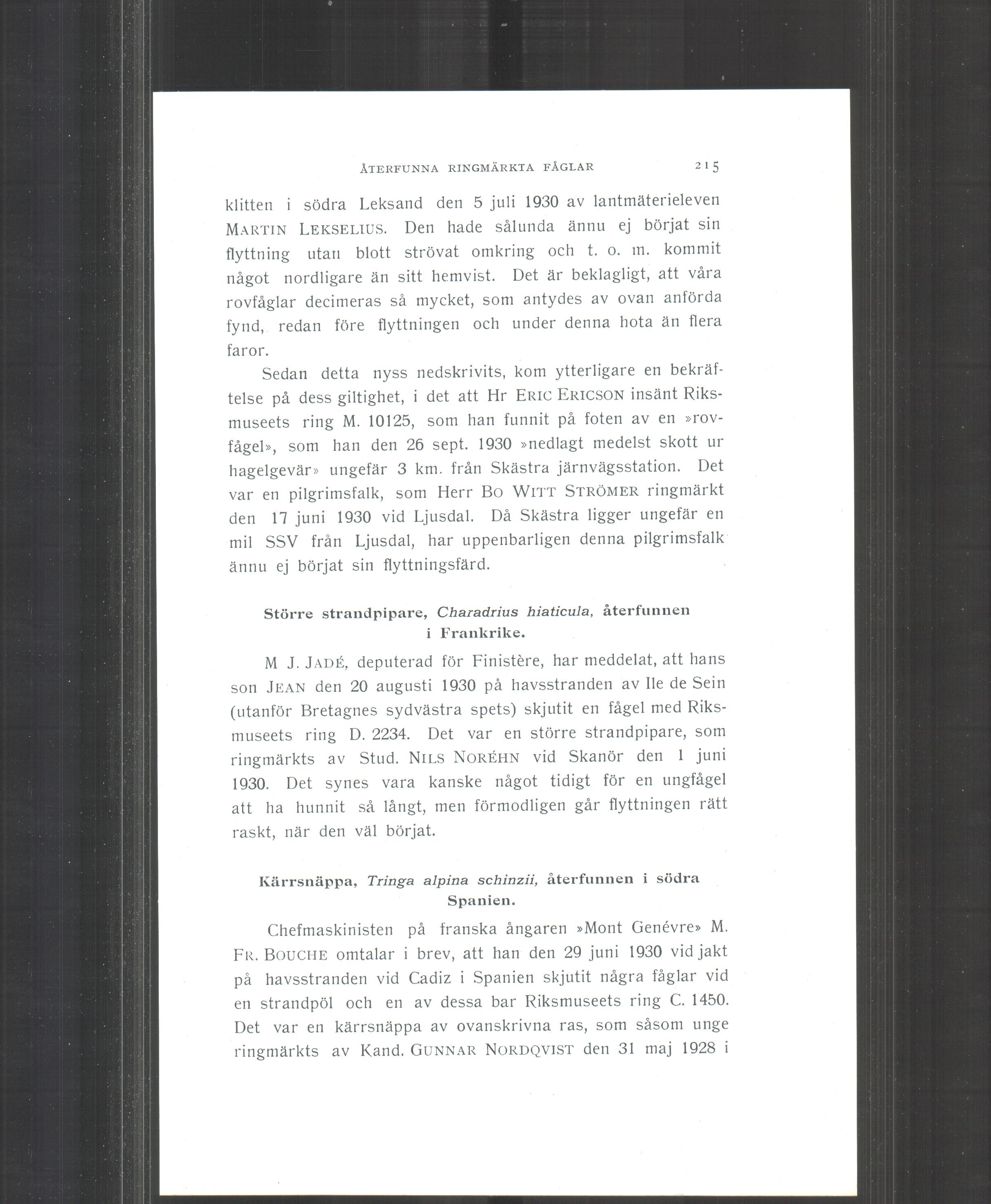 Full resolution (JPEG) - On this page / på denna sida - Återfunna ringmärkta fåglar. Av Einar Lönnberg. XXII. (Corvus cornix, Sturnus vulgaris, Passer montanus, Anthus trivialis, Pratincola rubetra, Butes buteo, Circus cyaneus, Falco peregrinus, Charadrius hiaticula, Tringa alpina schinzii, Totanus totanus, Actitis hypoleucus, Numenius arquatus, Sterna hirundo, S. paradisaea, Larus canus, L. ridibundus)