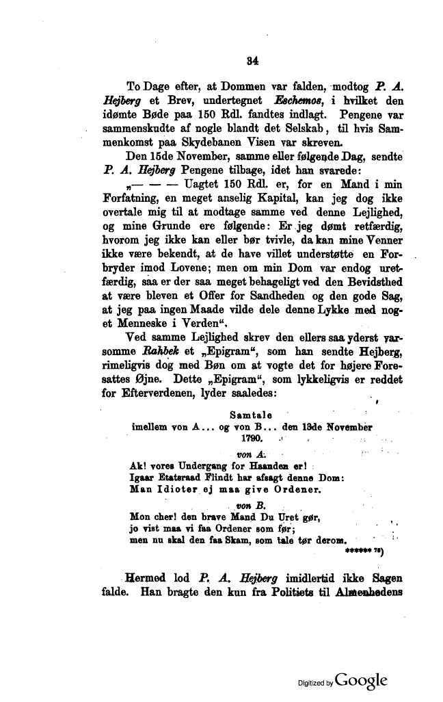 yar-somme Rahbek et „Epigram", som han sendte Hejberg,