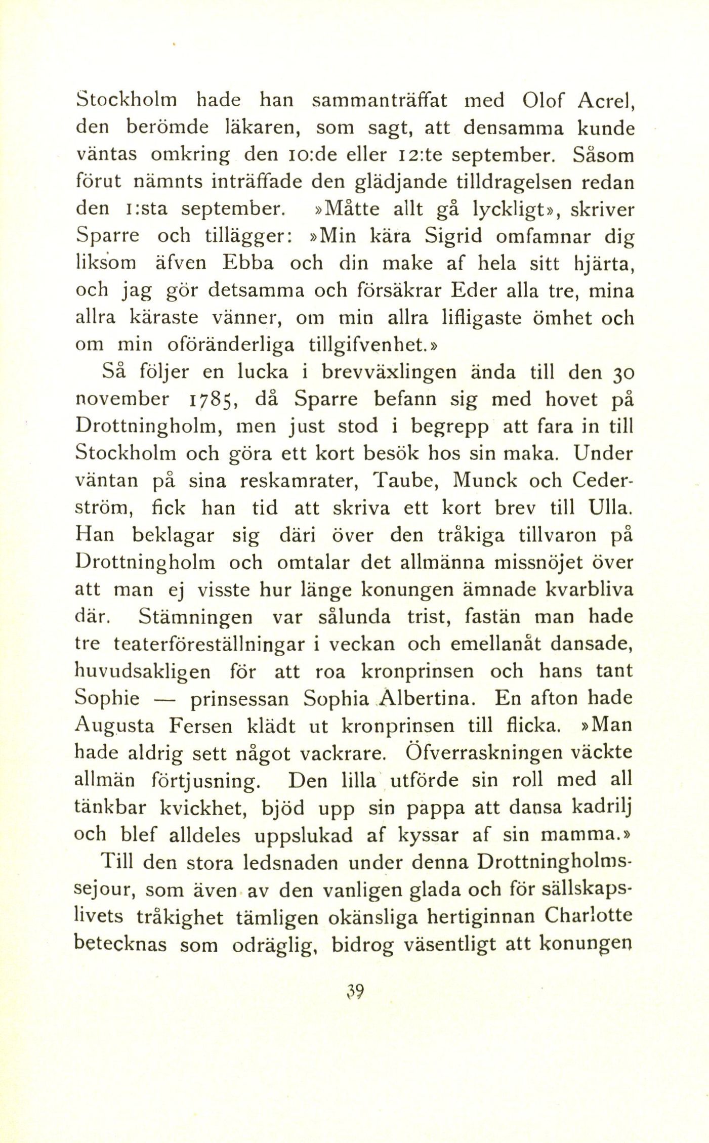 Sparre och tillägger: »Min kära Sigrid omfamnar dig