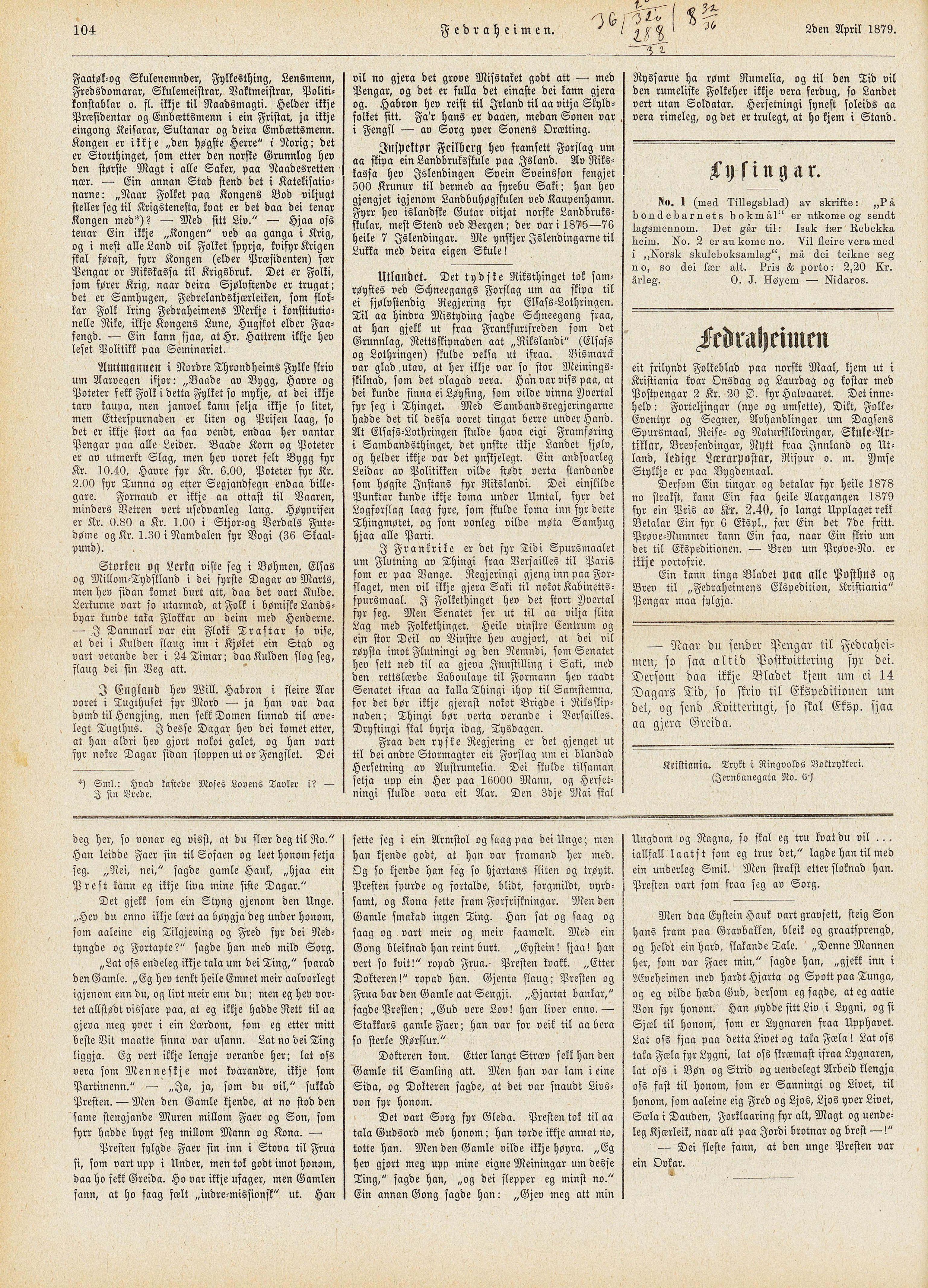 eit frilyndt Folkeblad paa norskt Maal, kjem ut i