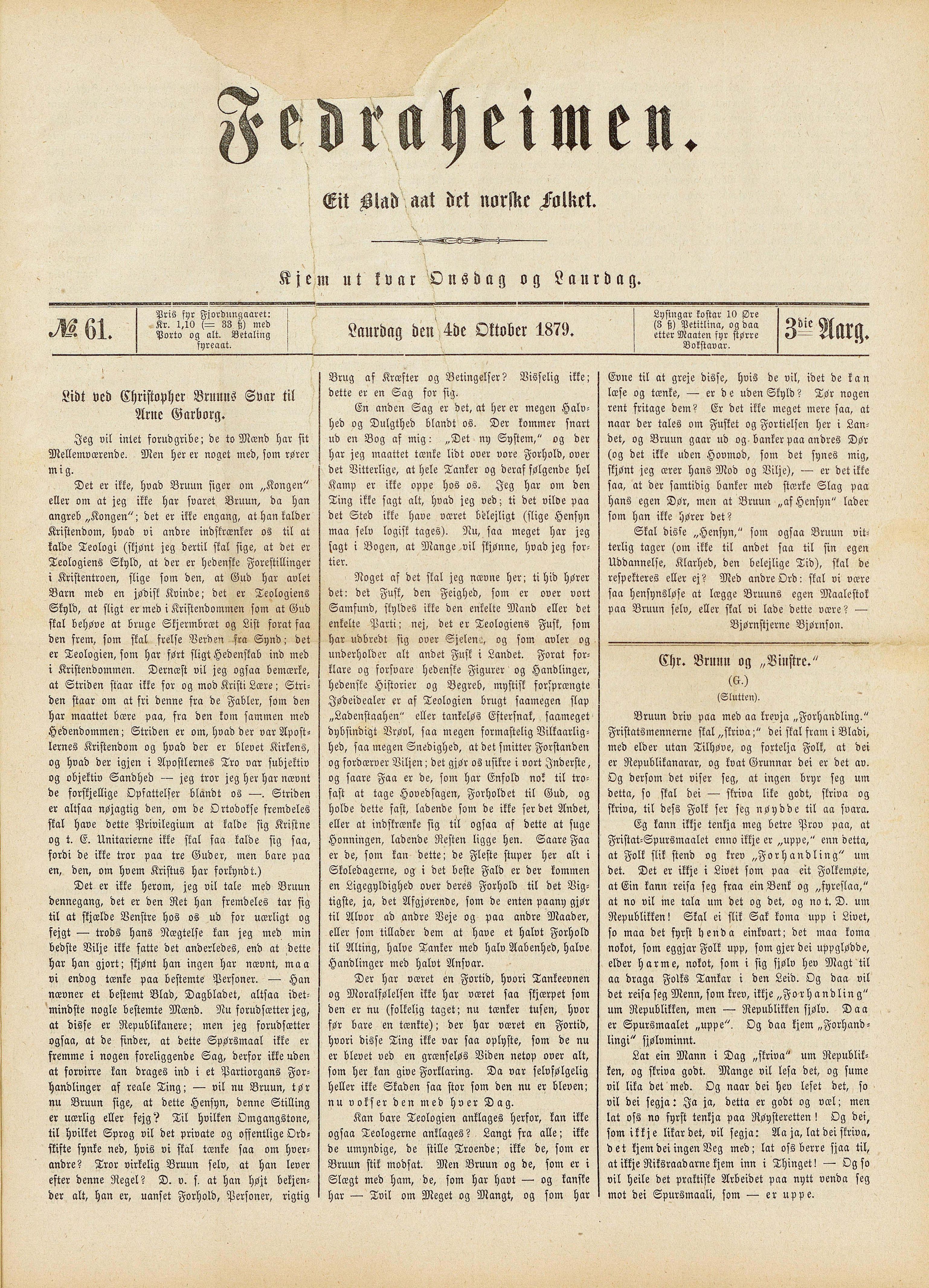 Laurdag den«»4de Oktober 1879.