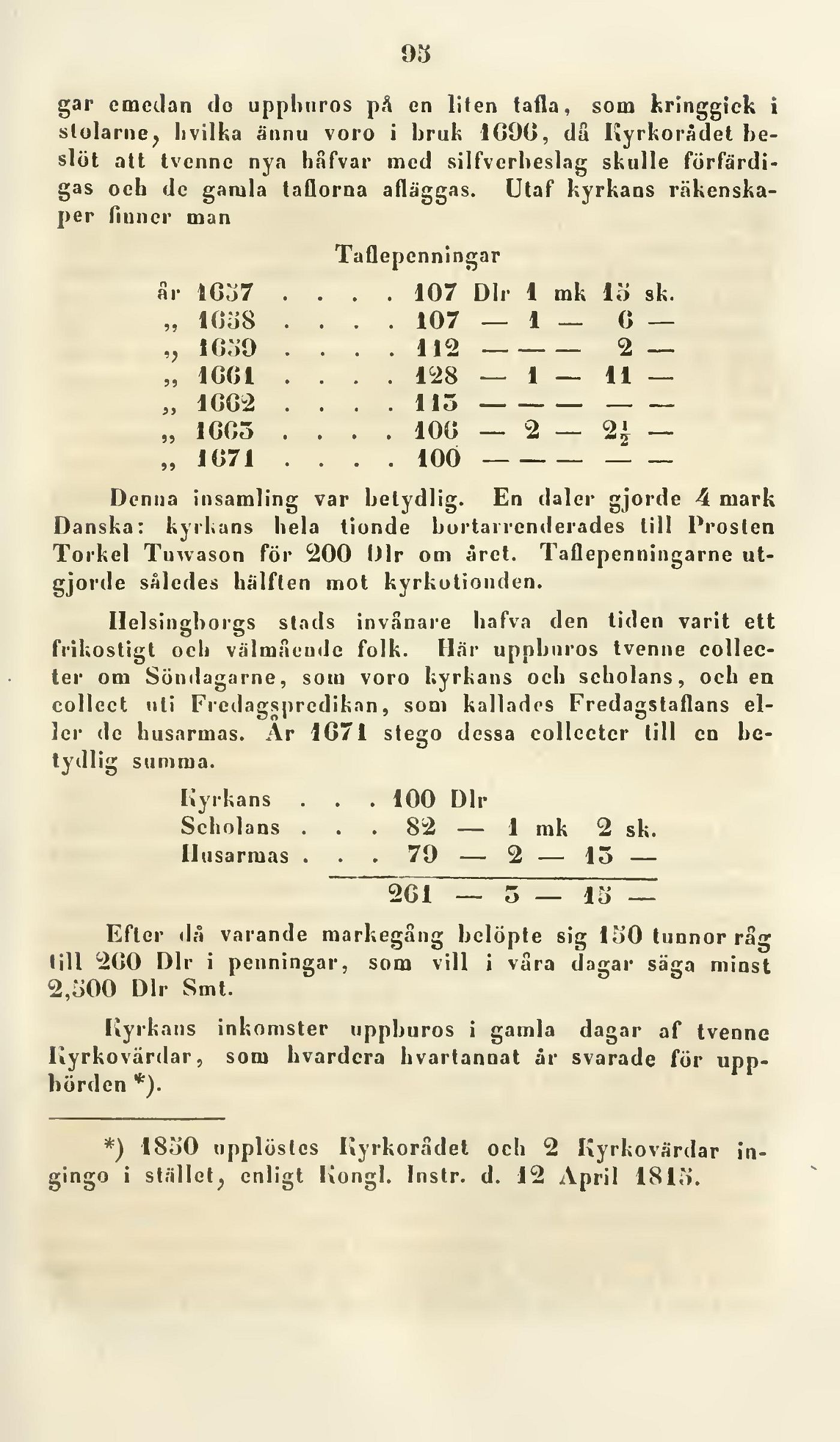 Kyrkans inkomster uppburos i gamla dagar af tvenne