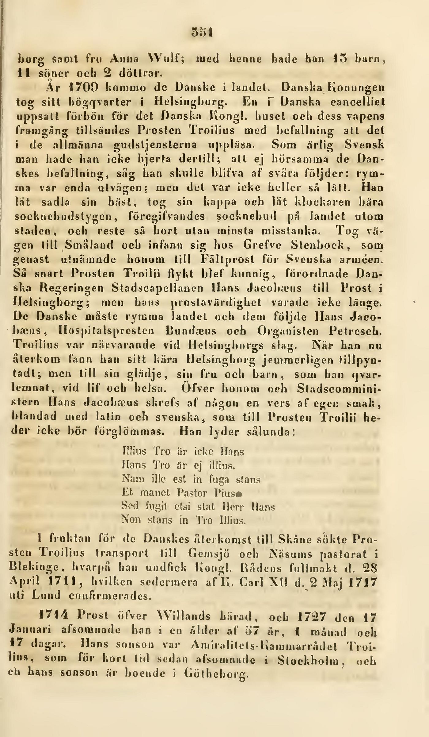 Troilius var närvarande vid Helsingborgs slag. När han nu