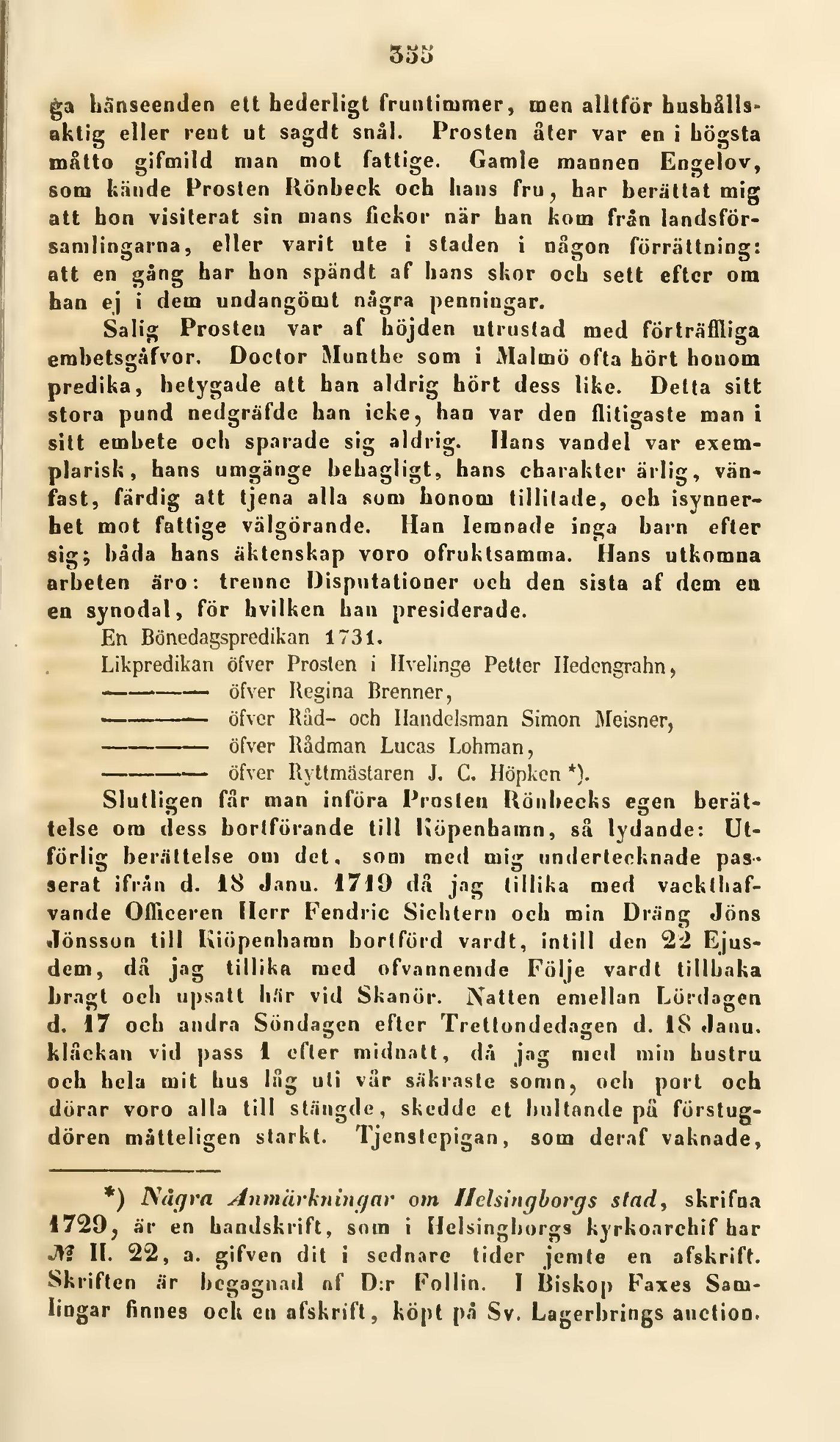 som kände Prosten Rönbeck och lians fru, har berättat mig