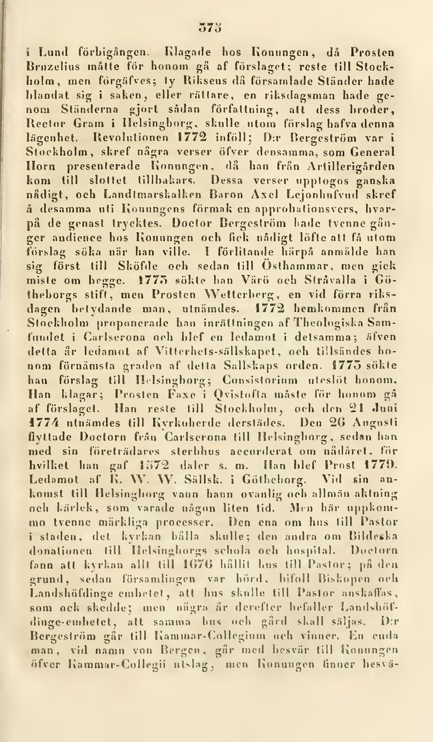 lågenhet. Revolutionen 1772 inföll’ D:r Bergeström var i