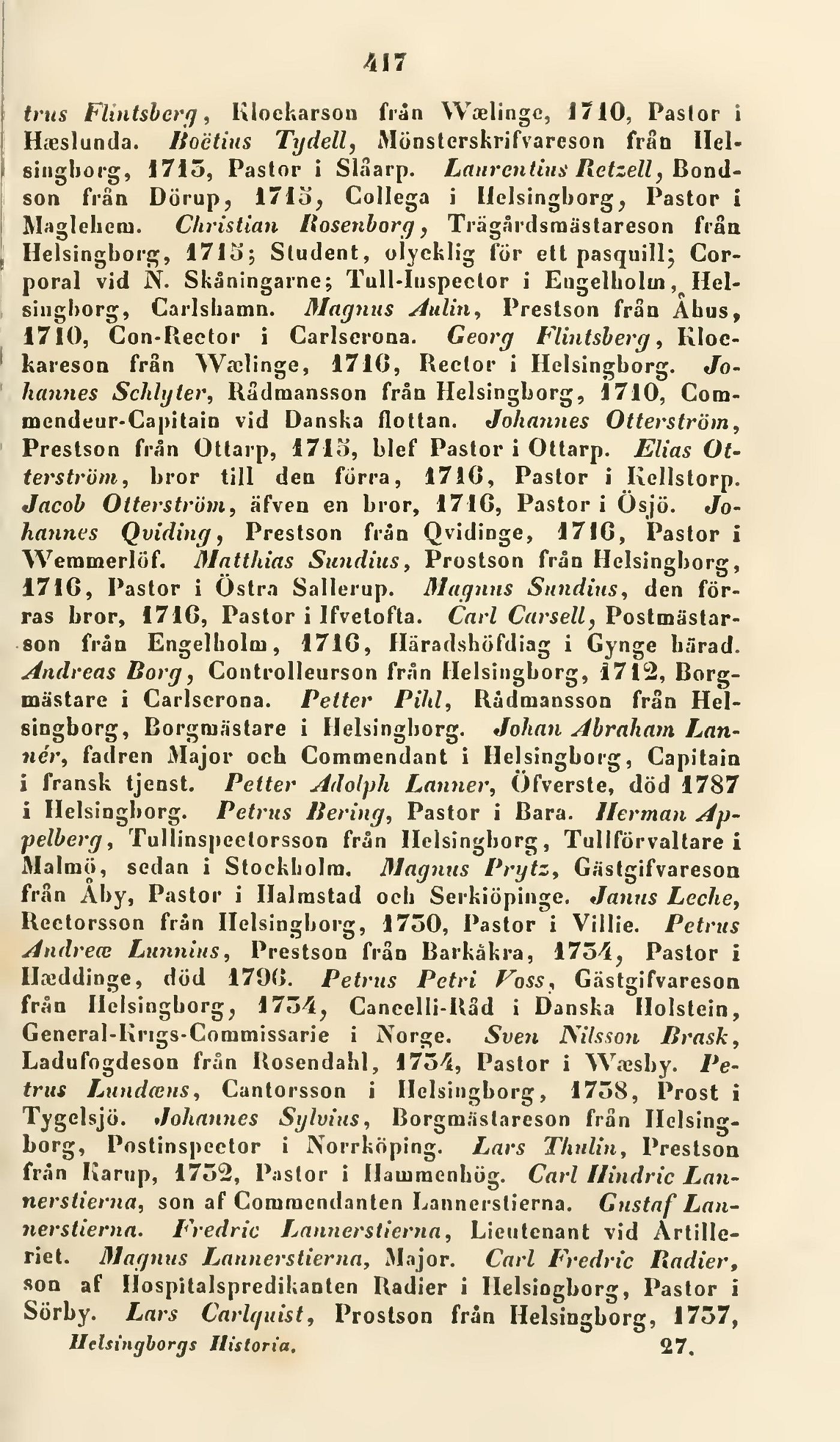 Helsingborg, 1715, Pastor i Slåarp. Laurentius Retzell}