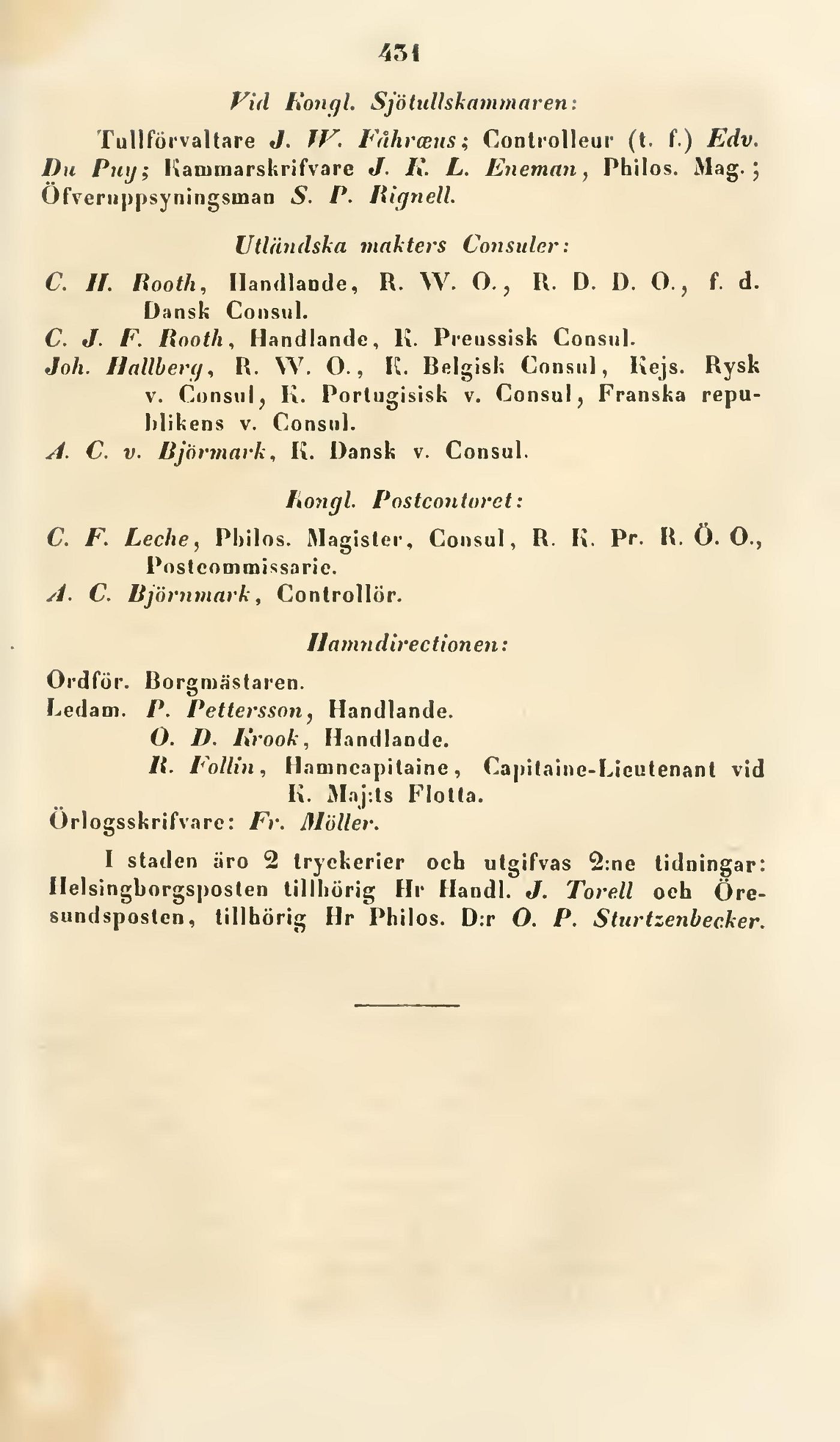 C. F. Leche, Philos. Magister, Consul, R. IC. Pr. R. Ö. O.,