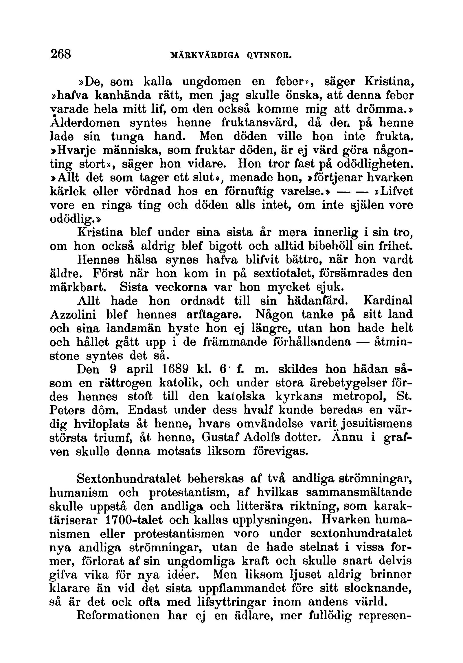 om hon också aldrig blef bigott och alltid bibehöll sin frihet.
