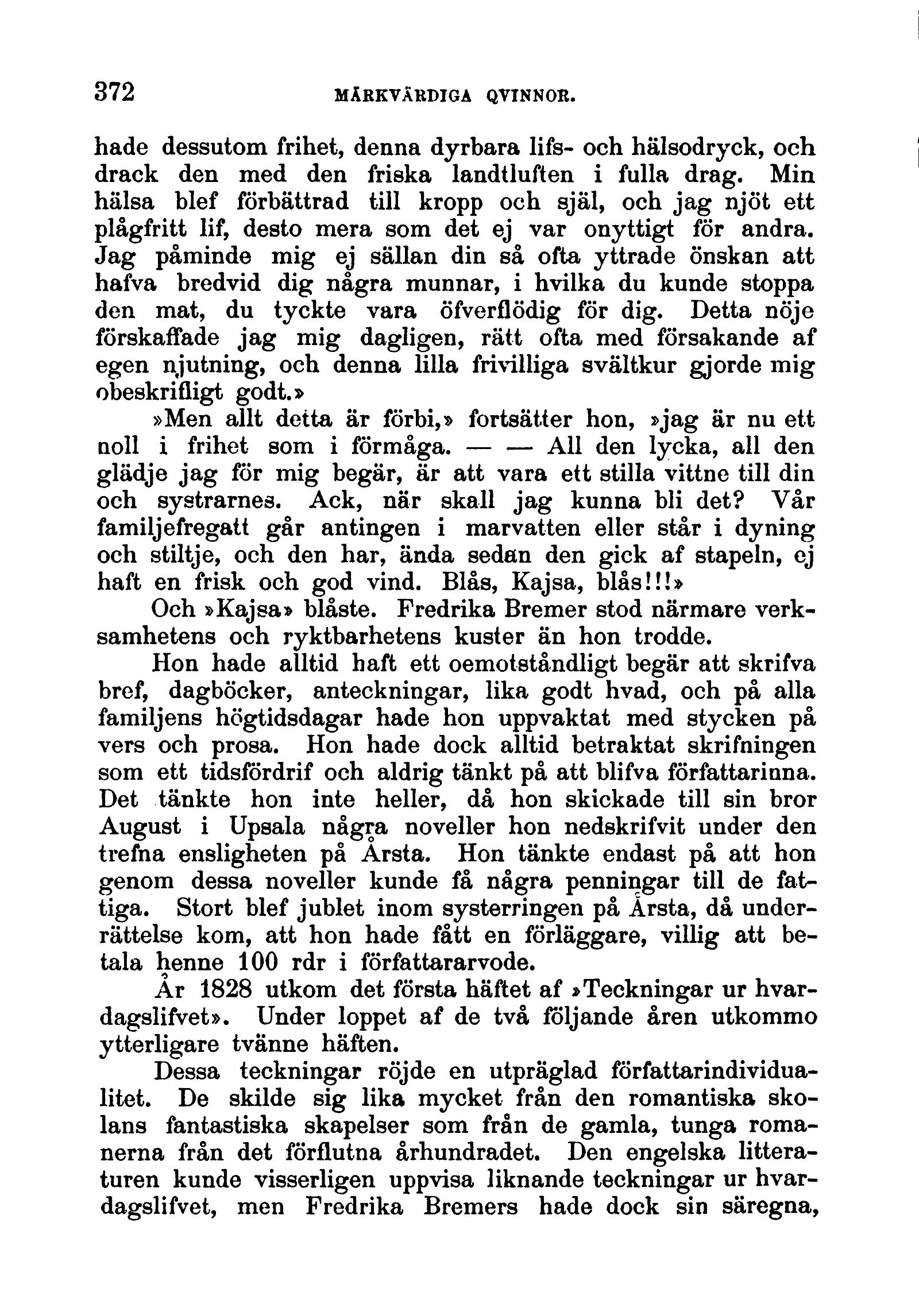 Och »Kajsa» blåste. Fredrika Bremer stod närmare