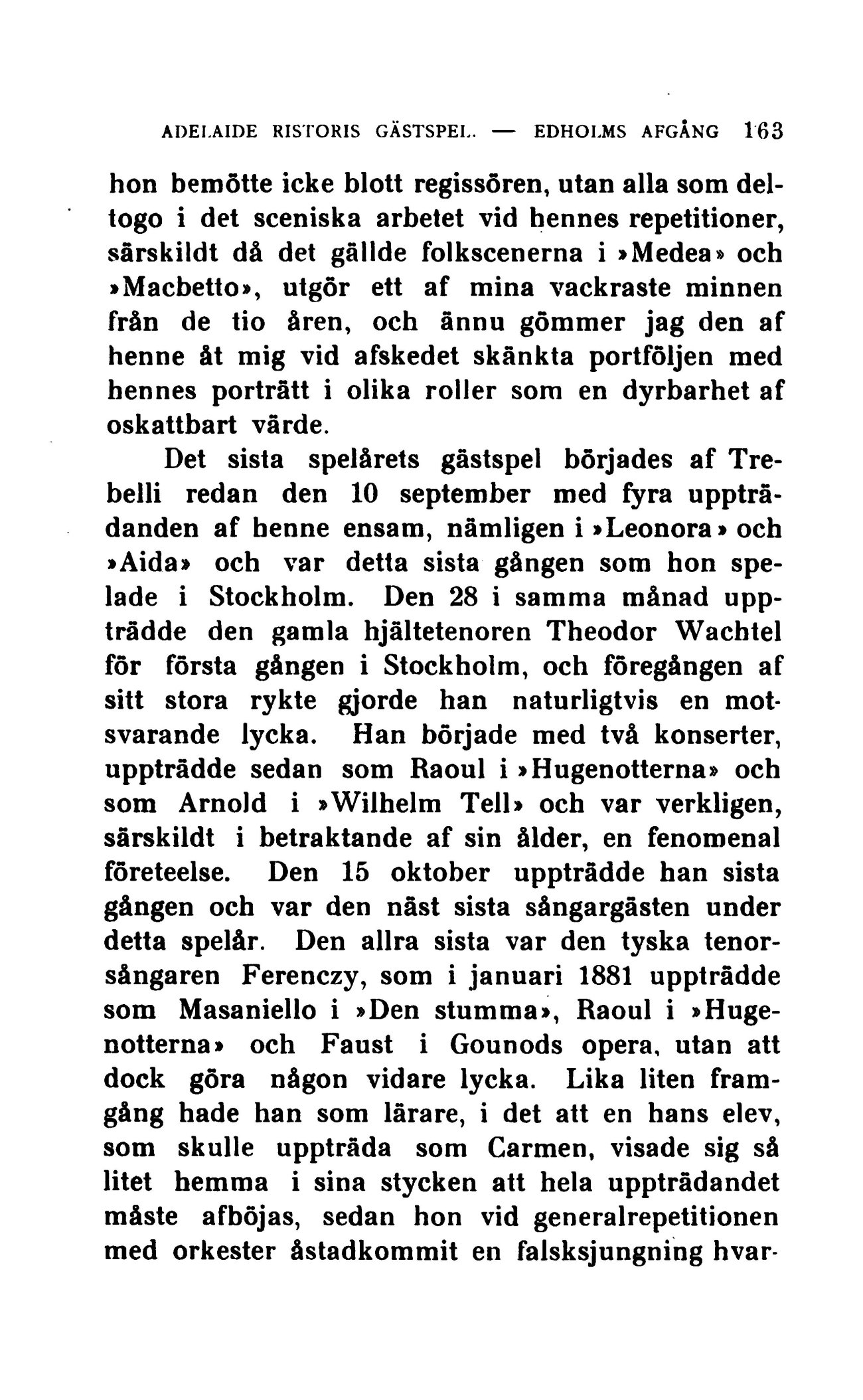 uppträdanden af henne ensam, nämligen i »Leonora» och