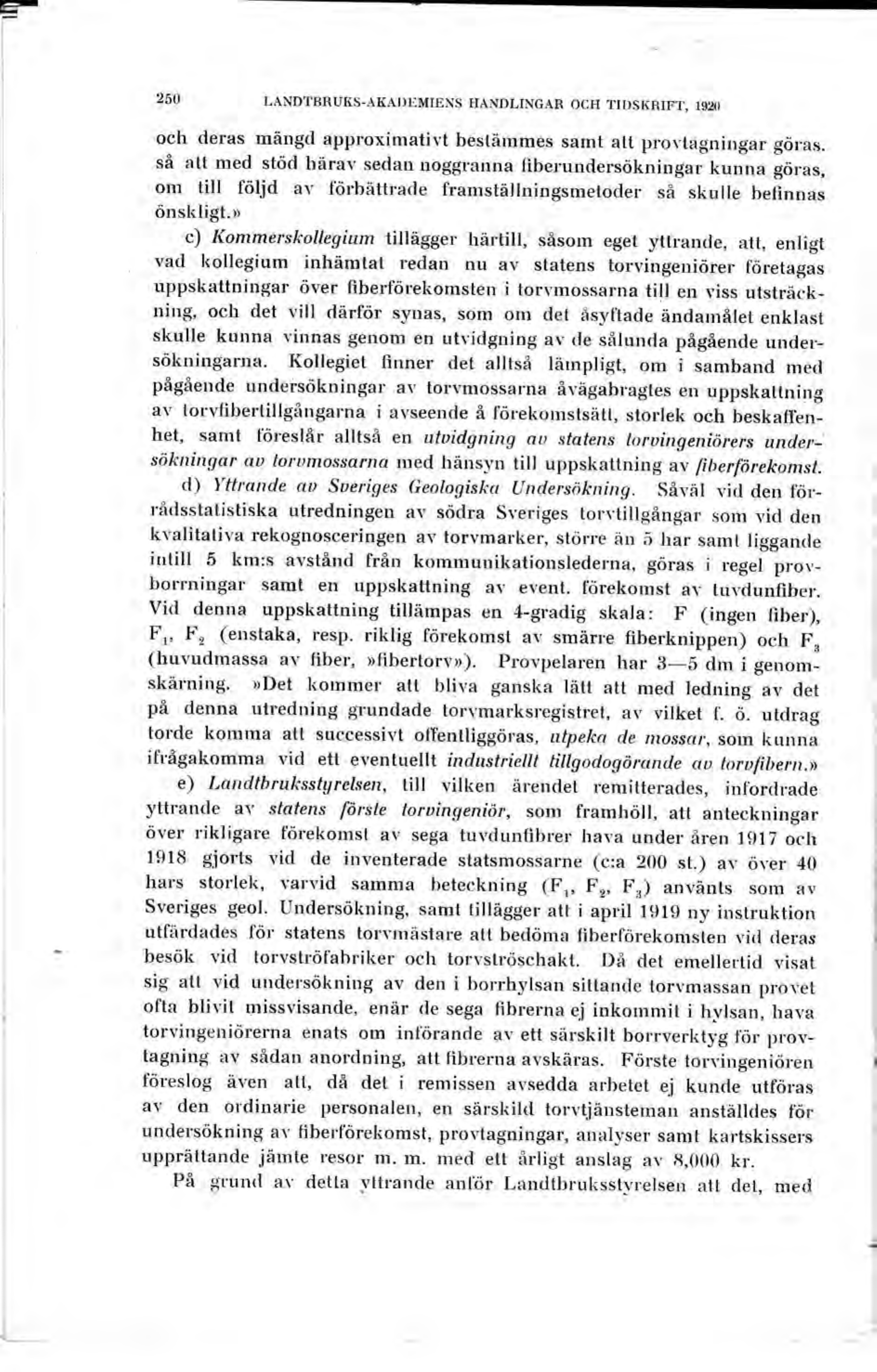 250 LANDTBRUI{S.AKAI)IiMIENS HANDLINGAR OCH TIDSKRIFT, 1920