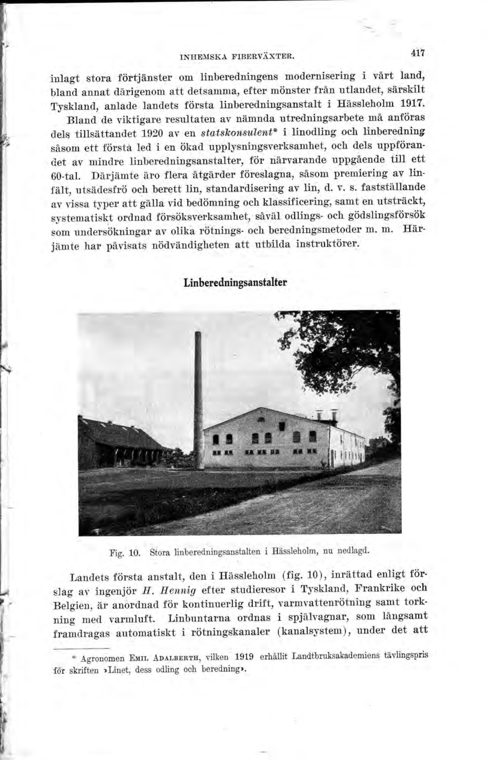 X’ig. 10. Stora linberedningsanstalten i Håssleholm, nu nedlagd’