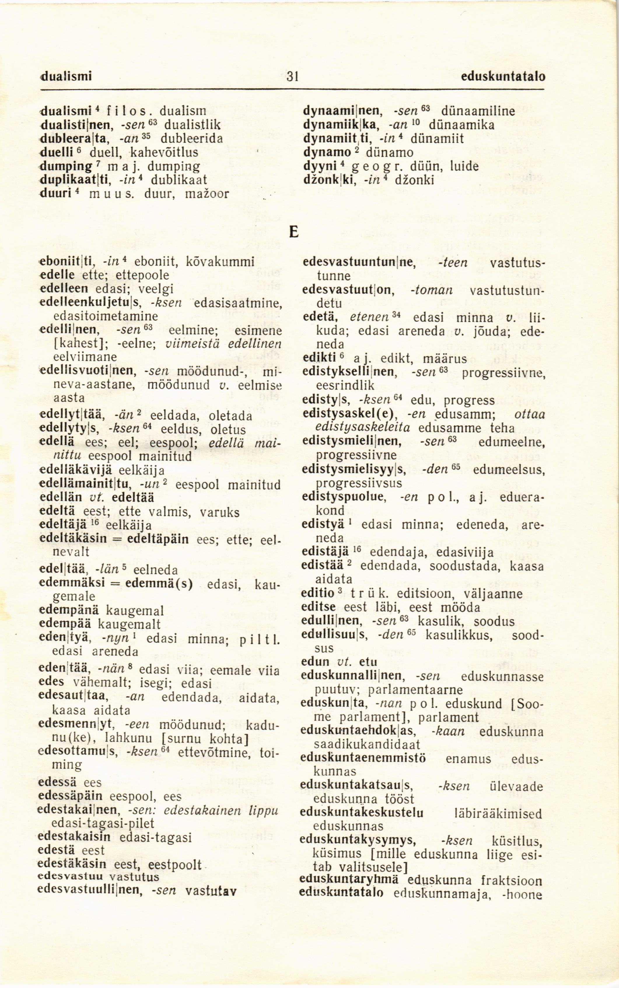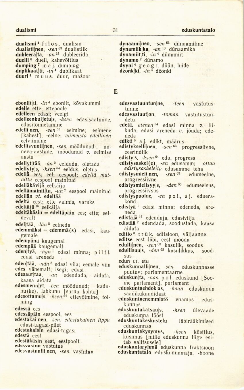 eduskunta, -nan poi. eduskund