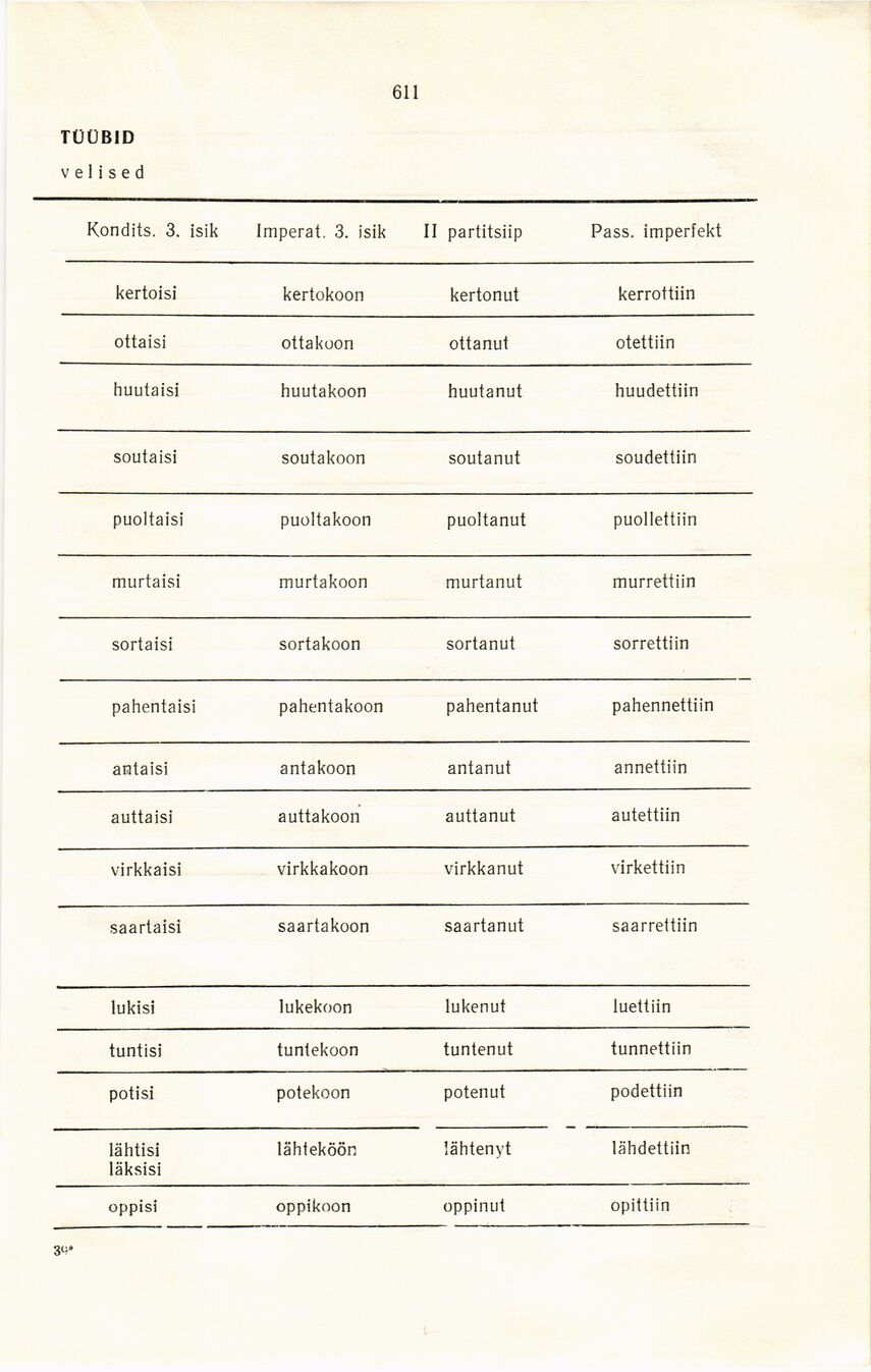 Kondits. 3. isik Imperat. 3. isik II partitsiip Pass. imperfekt