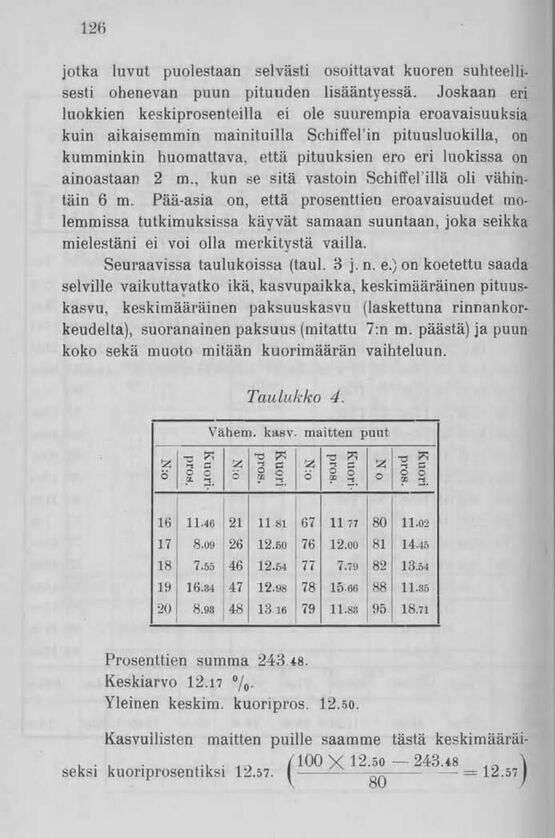 Seuraavissa taulukoissa (taul. 3 j. n. e.) on koetettu saada