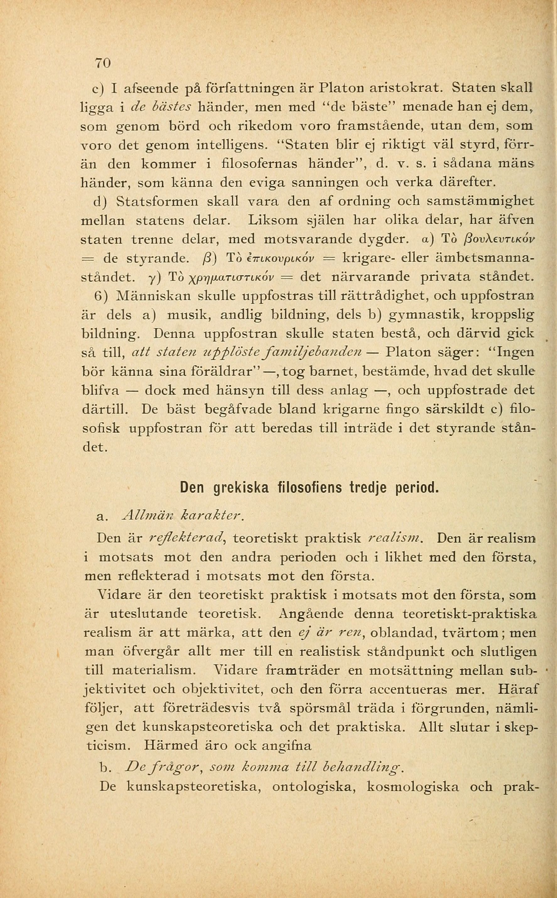 c) I afseende på författningen är Platon aristokrat. Staten skall
