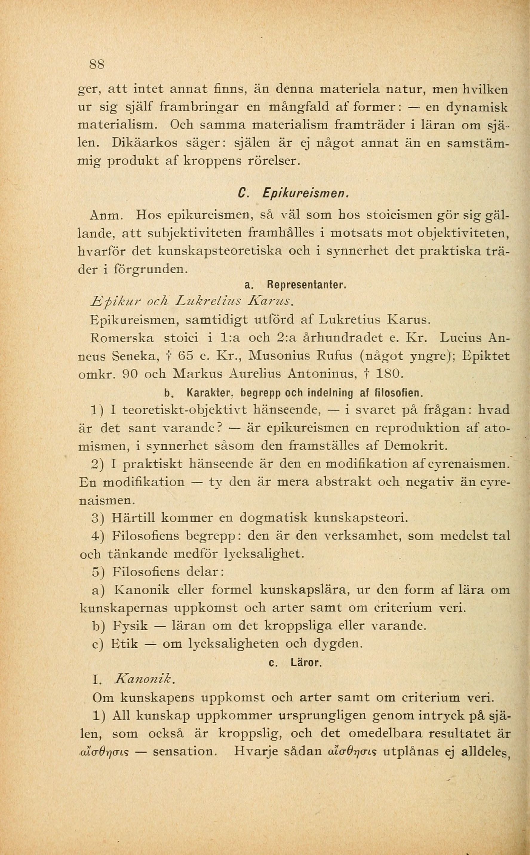 Anm. Hos epikureismen, så väl som hos stoicismen gör sig