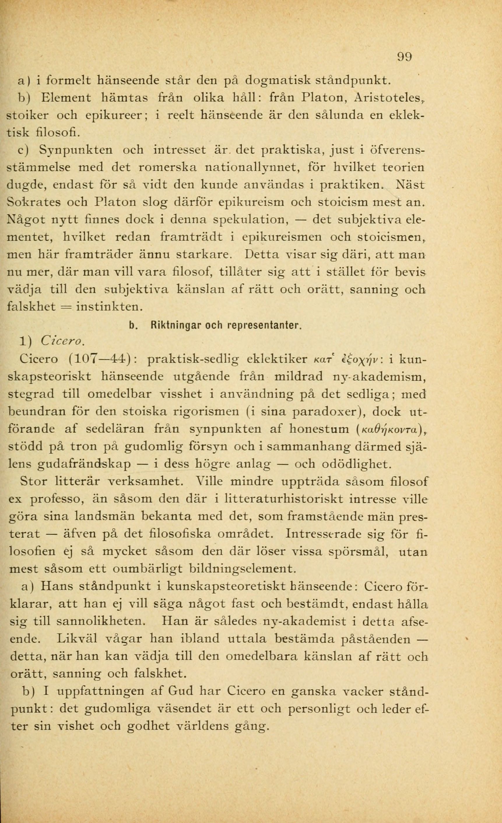Cicero (107—44): praktisk-sedlig eklektiker Kar i£ox?}v: i