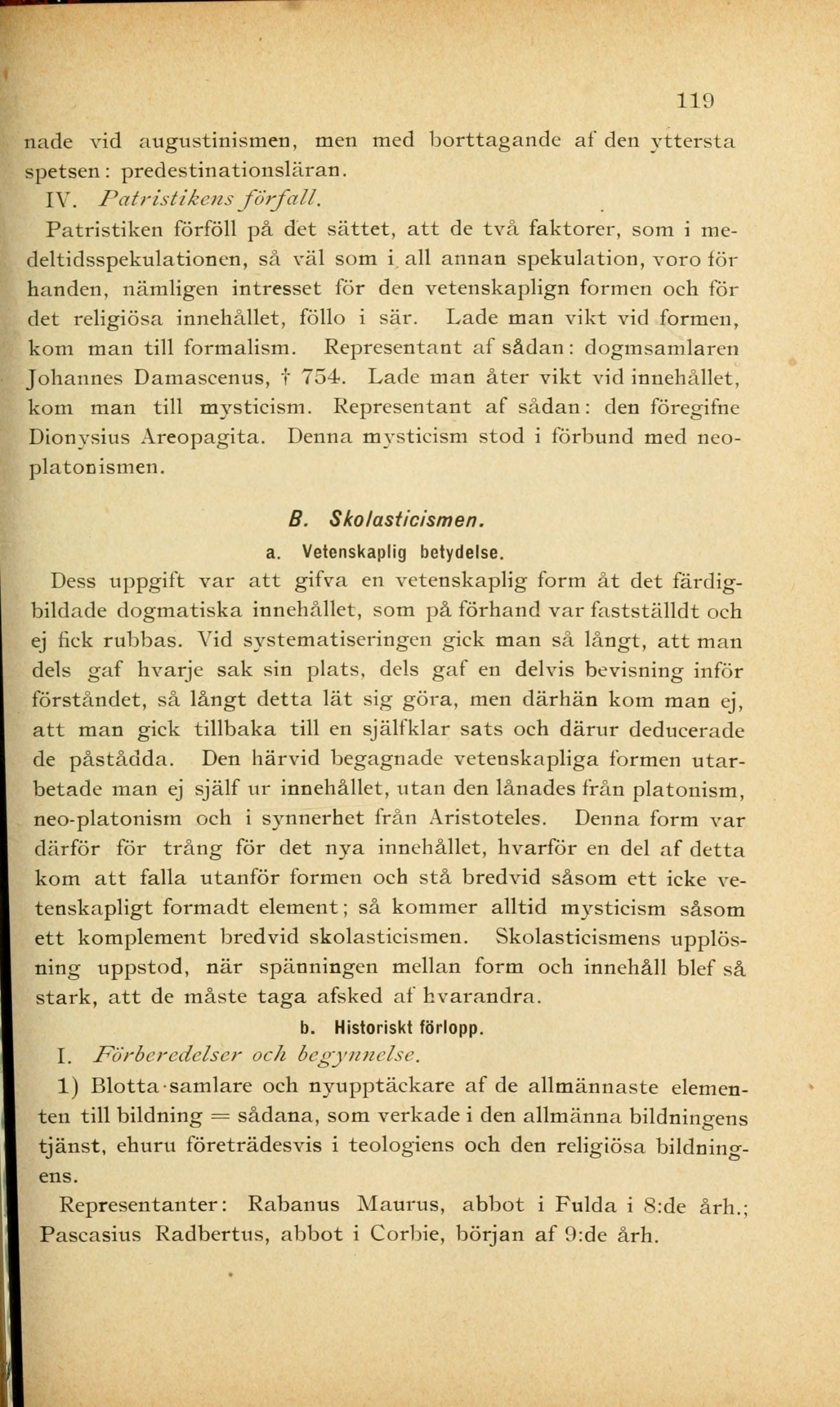 Patristiken förföll på det sättet, att de två faktorer, som i