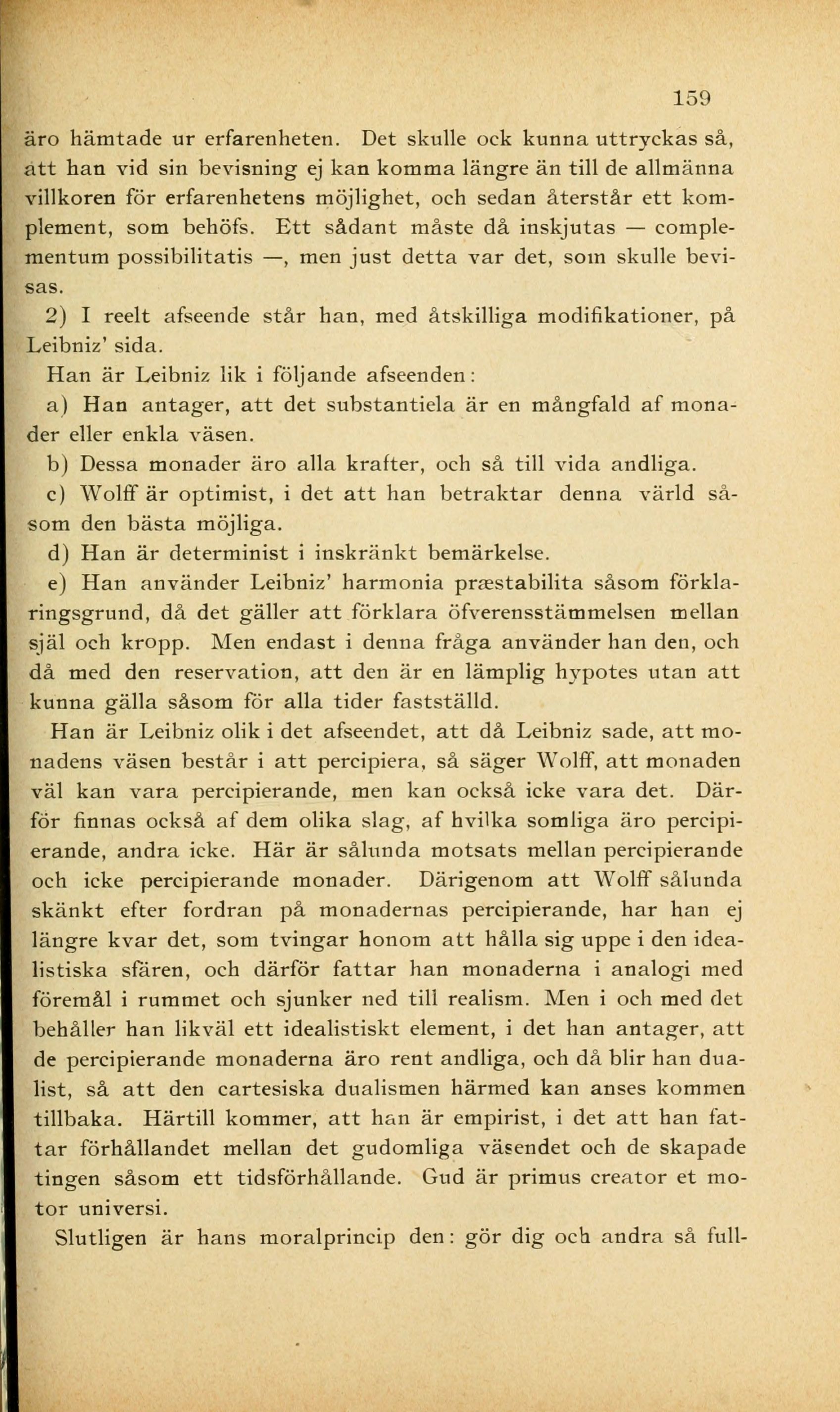 Han är Leibniz olik i det afseendet, att då Leibniz sade, att