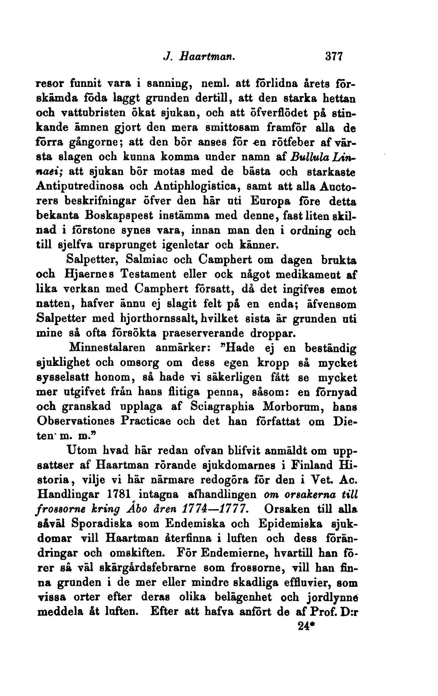 upp-sattser af Haartman rörande sjukdomarnes i Finland
