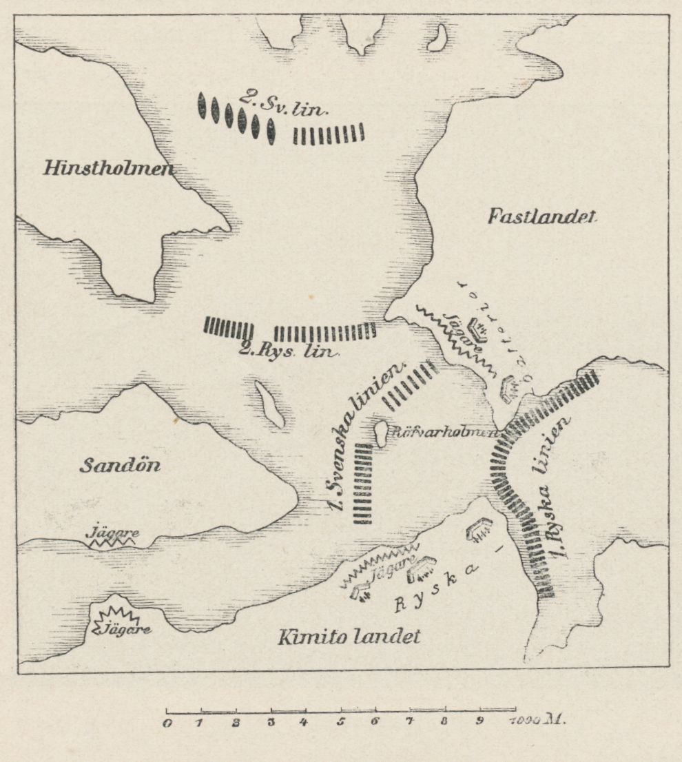 Sandöström. Lyckades ryssarna här bryta sig igenom, skulle deras i Åbo skärgård förenade