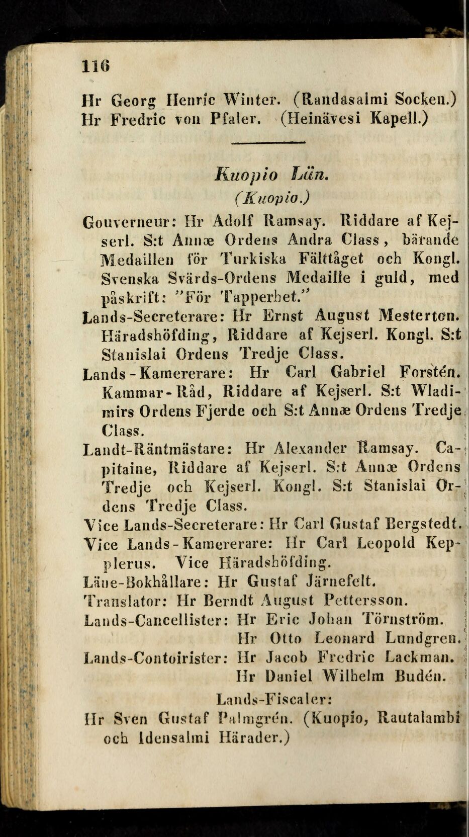 Landt-Räntmästare: Hr Alexander Ramsay. Ca-|