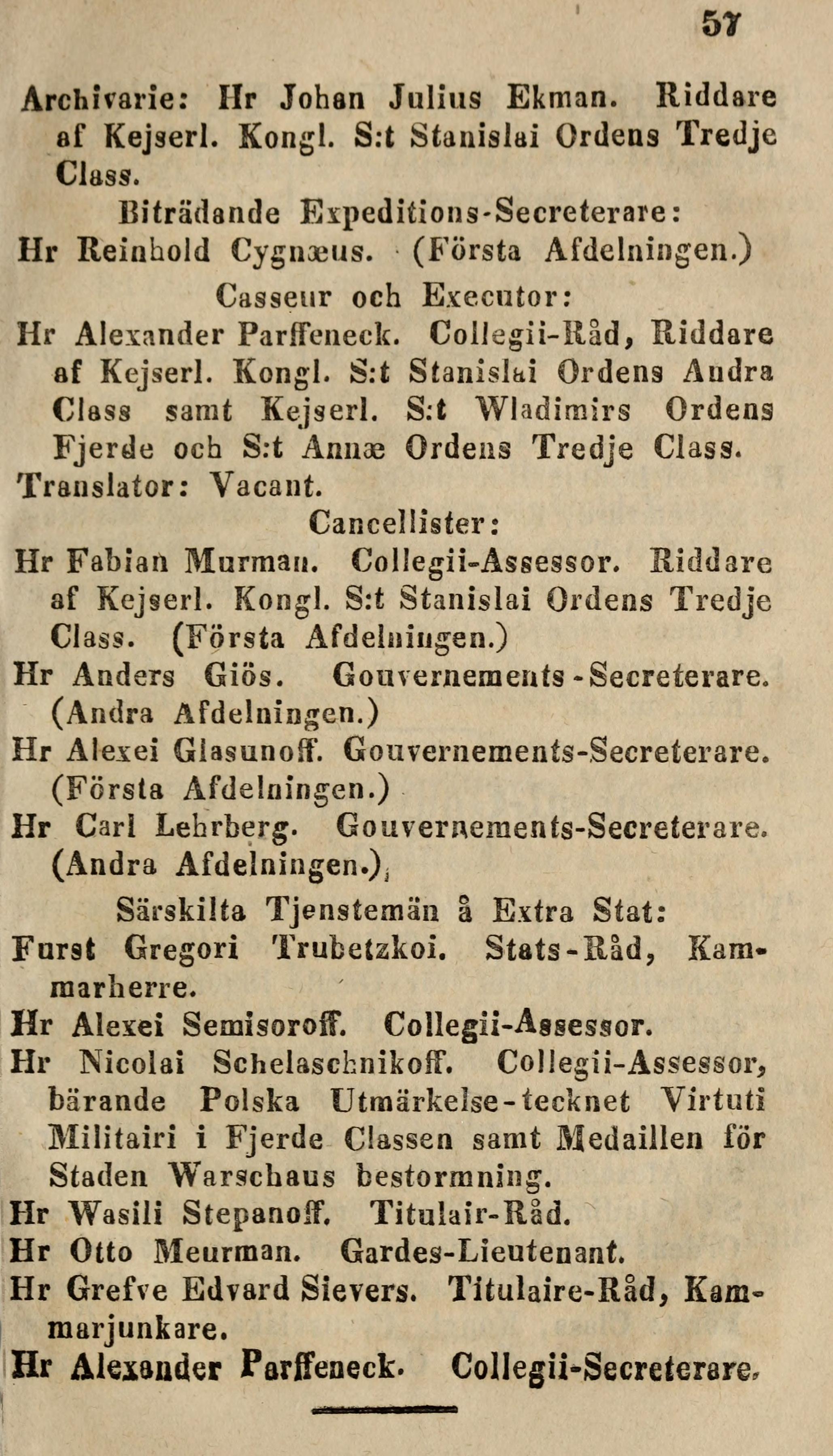 Archivarie: Hr Johan Julius Ekman. Riddare