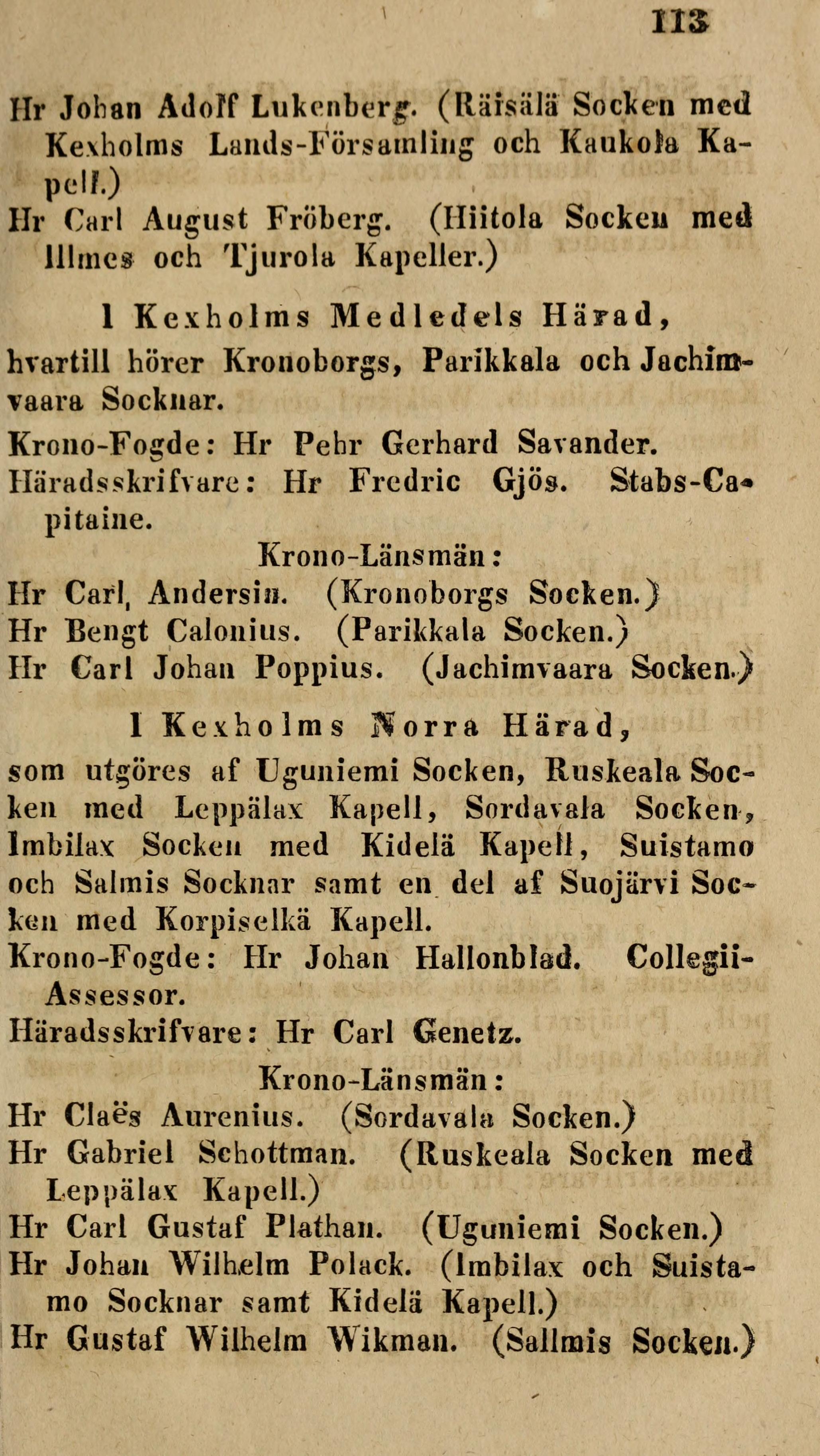 Häradsskrifvare : Hr Fredric Gjös. Stabs-Ca^