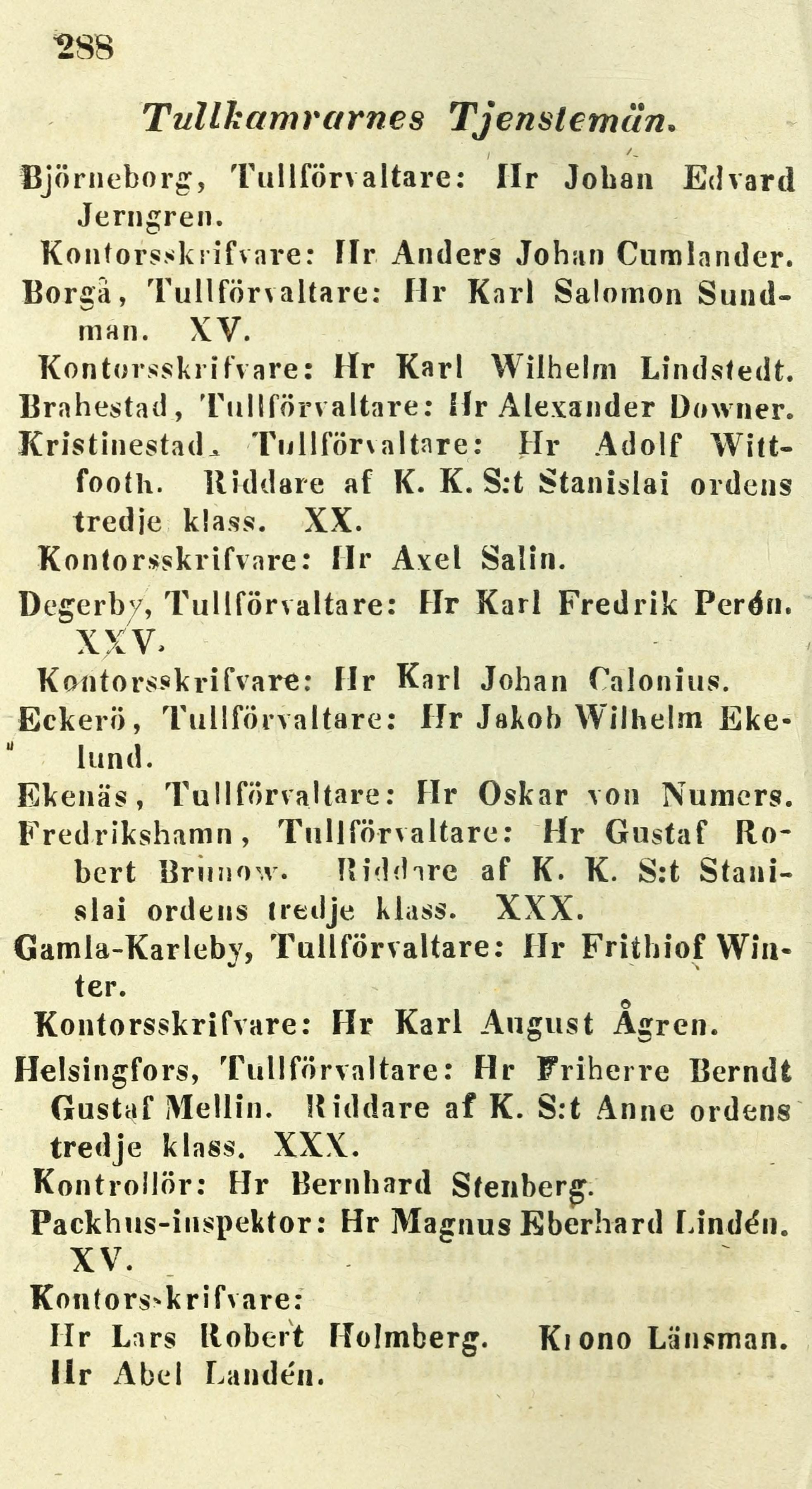 Helsingfors, Tullförvaltare: Hr Friherre Berndt