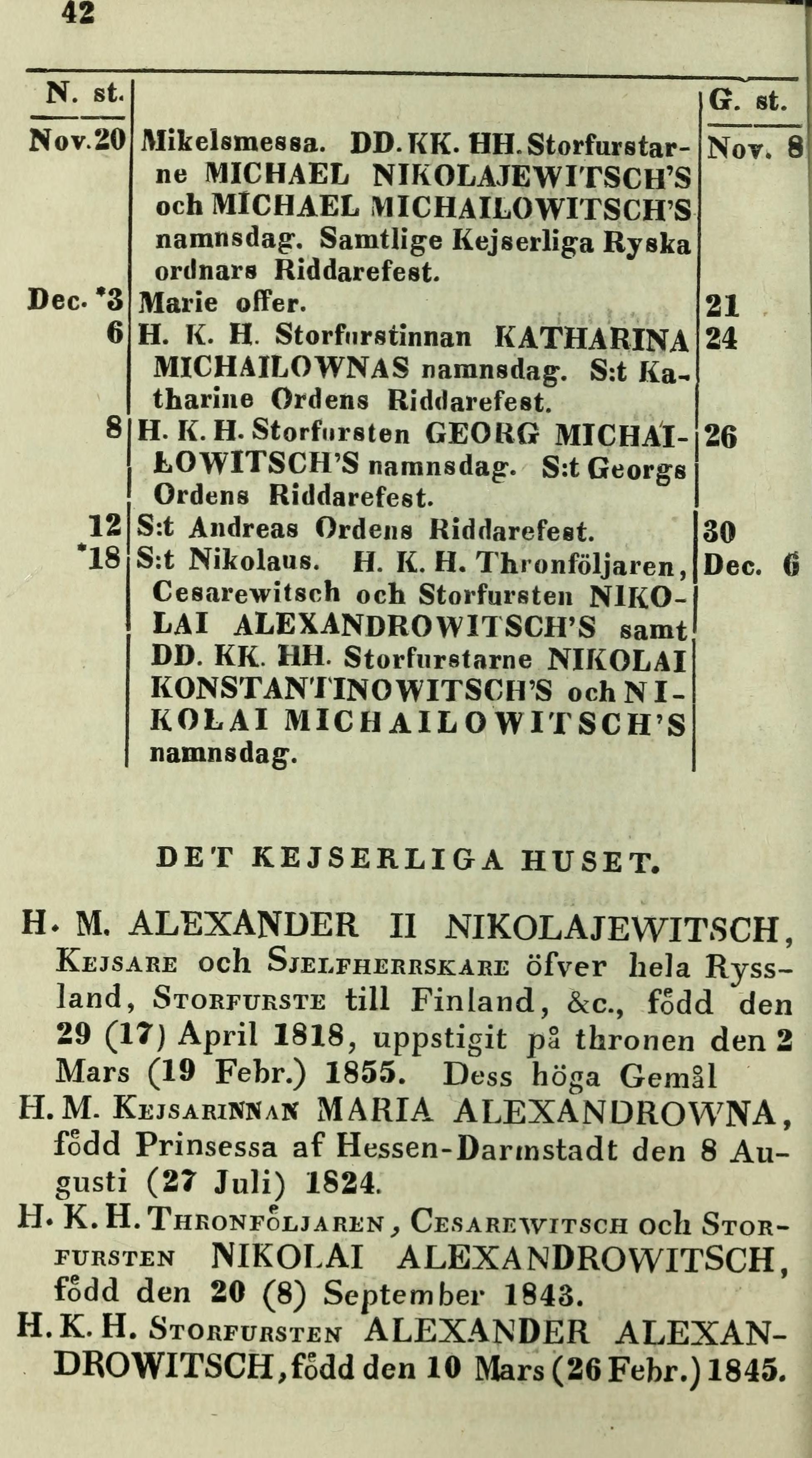 Nov.20 Mikelsmessa. DD. KK. HH.Storfurstar-