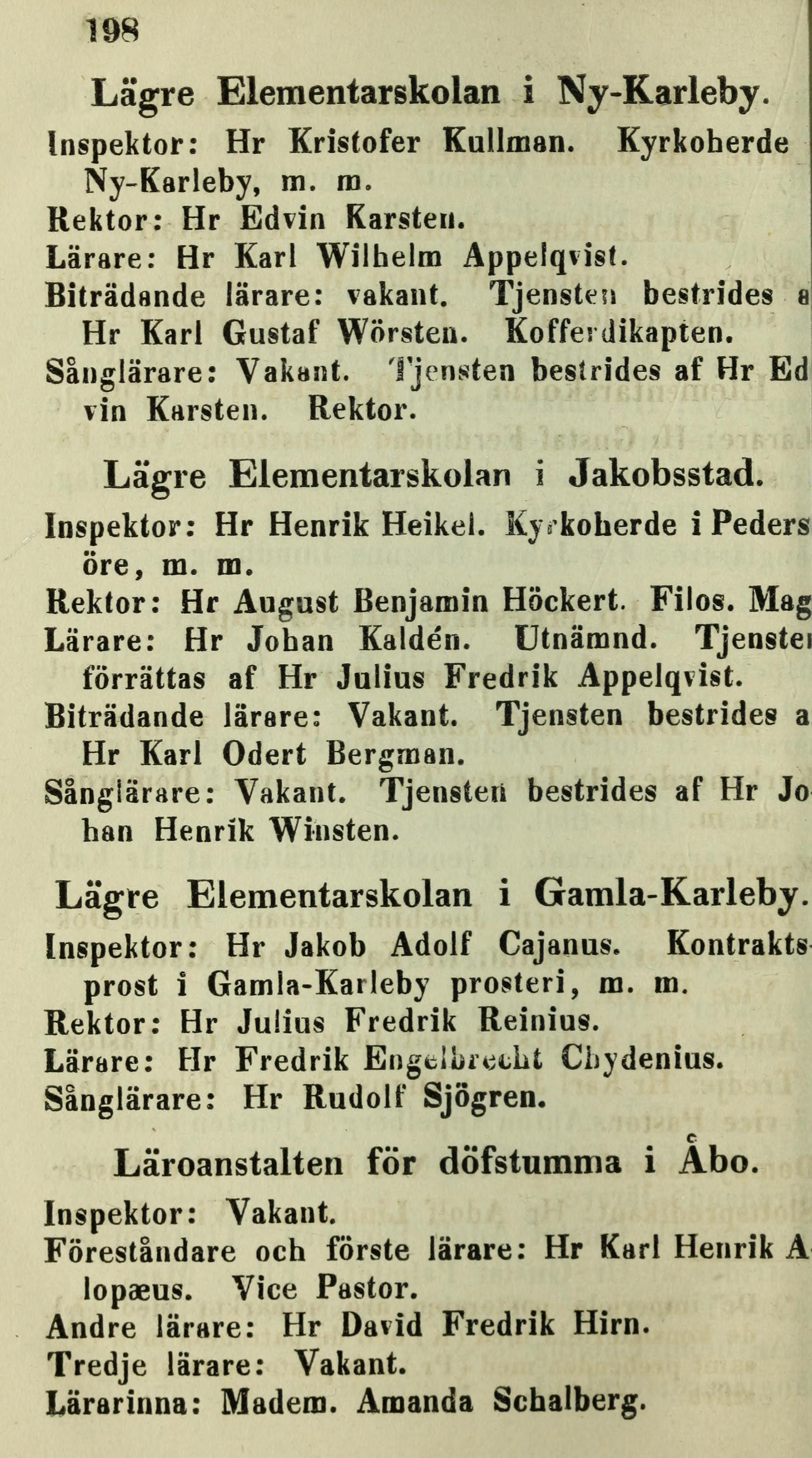 Lärare: Hr Karl Wilhelm Appelqvisf.