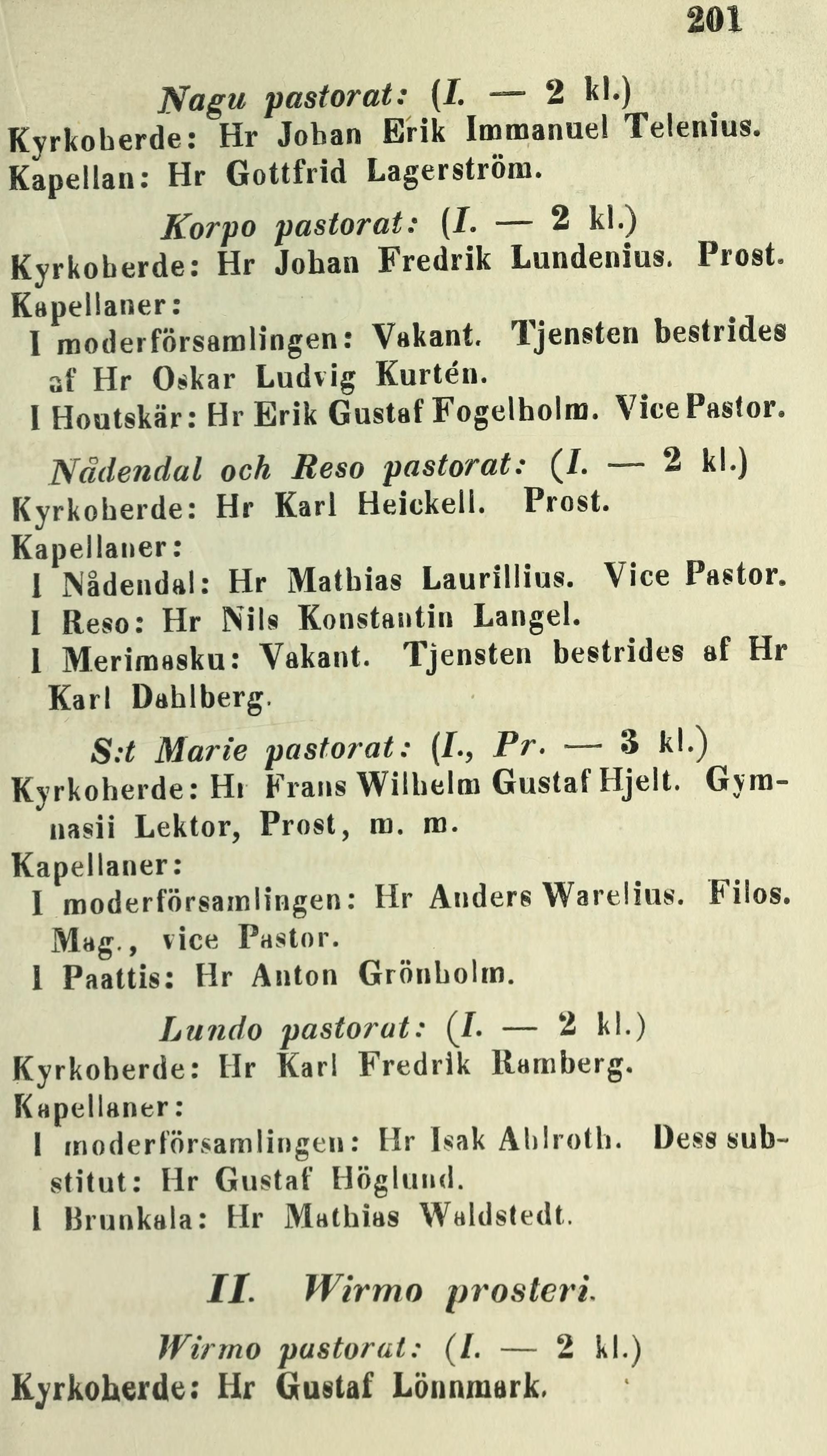 I Merimasku: Vakant. Tjensten bestrides af Hr
