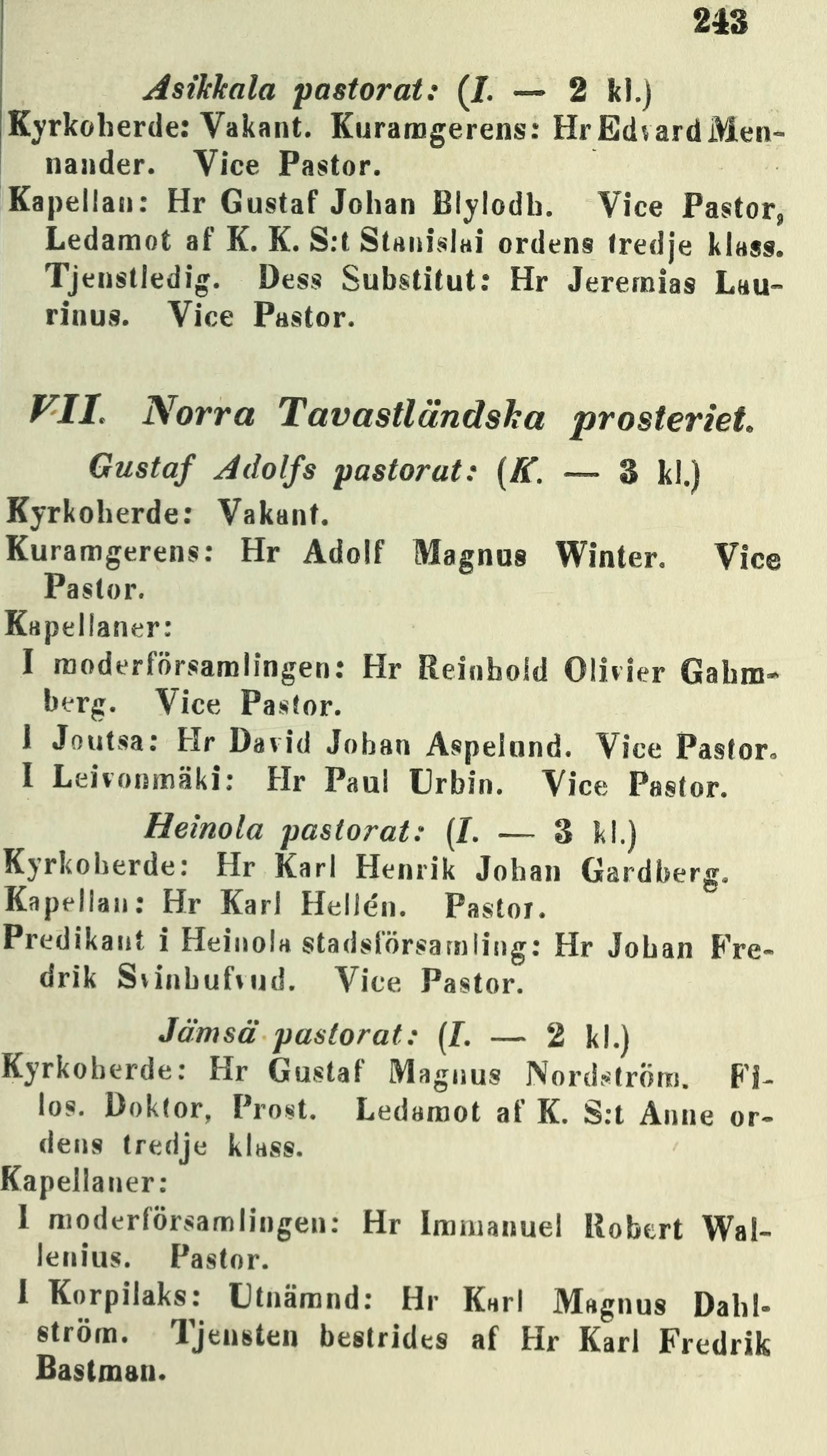 Kapellan: Hr Gustaf Johan Blylodh. Vice Pastor*