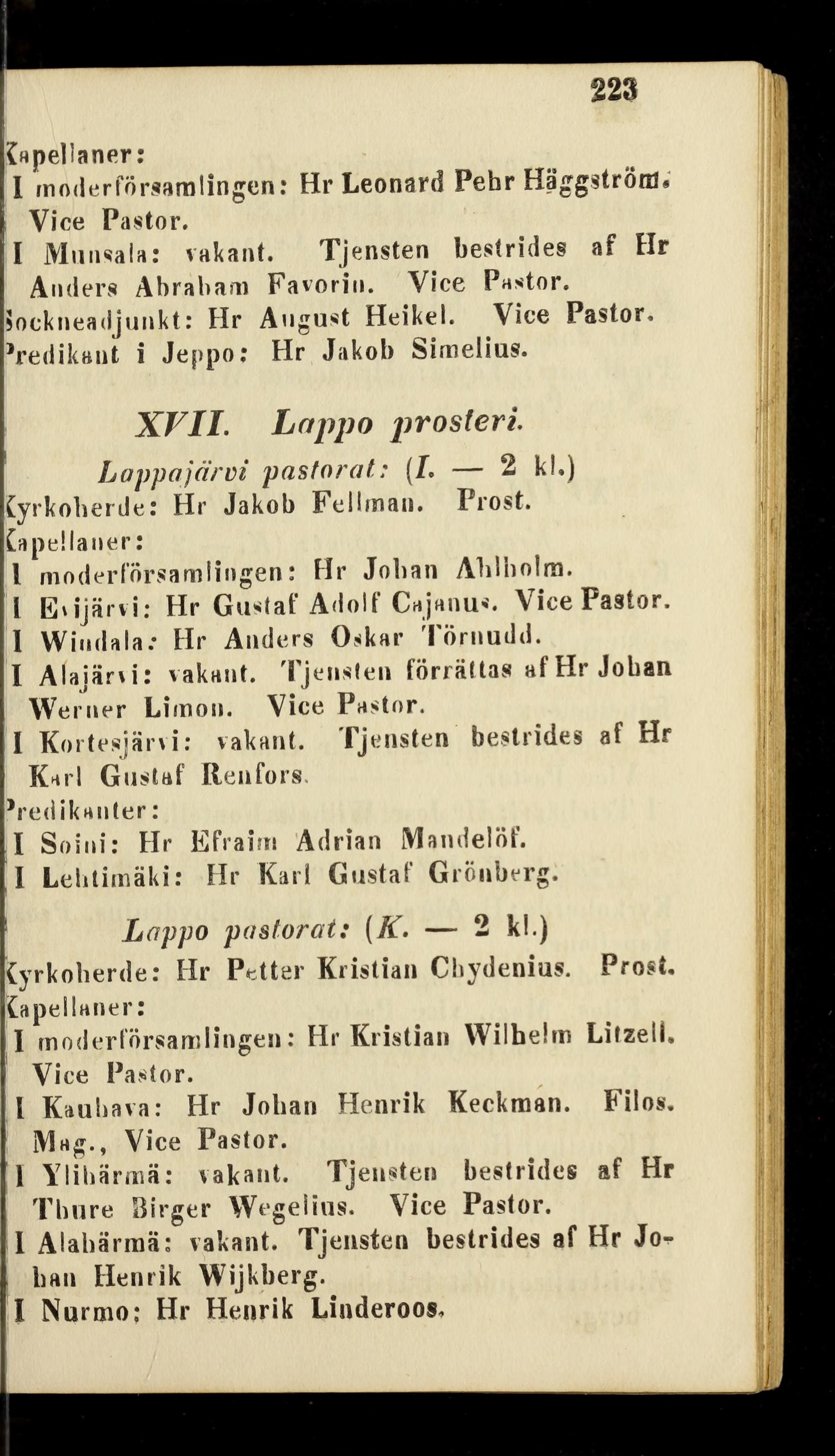 I Alajär\i: vakant. Tjeiisfen förrättas af Hr Johan
