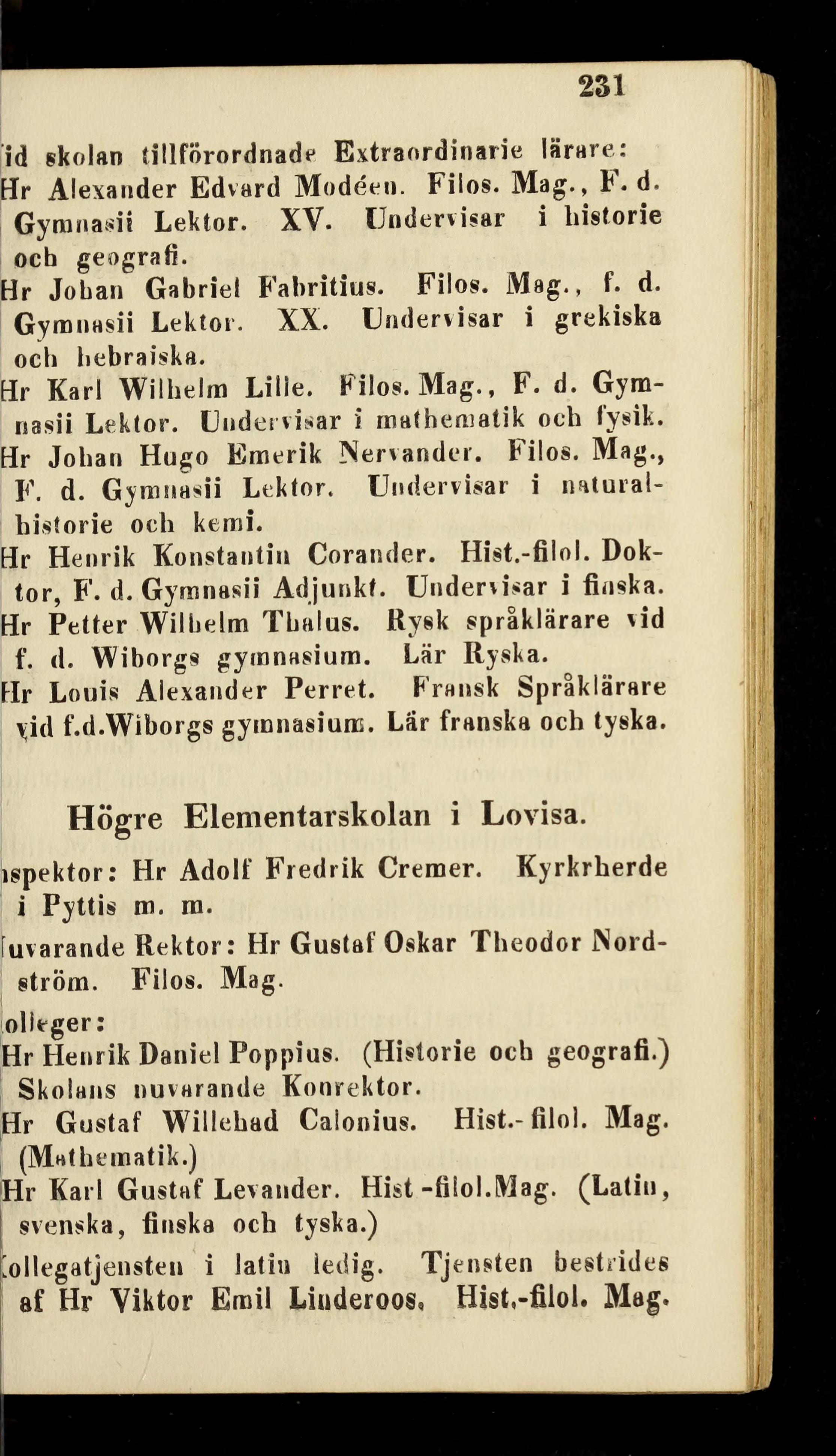 tor, F. d. Gymnasii Adjunkt. Undervisar i finska.