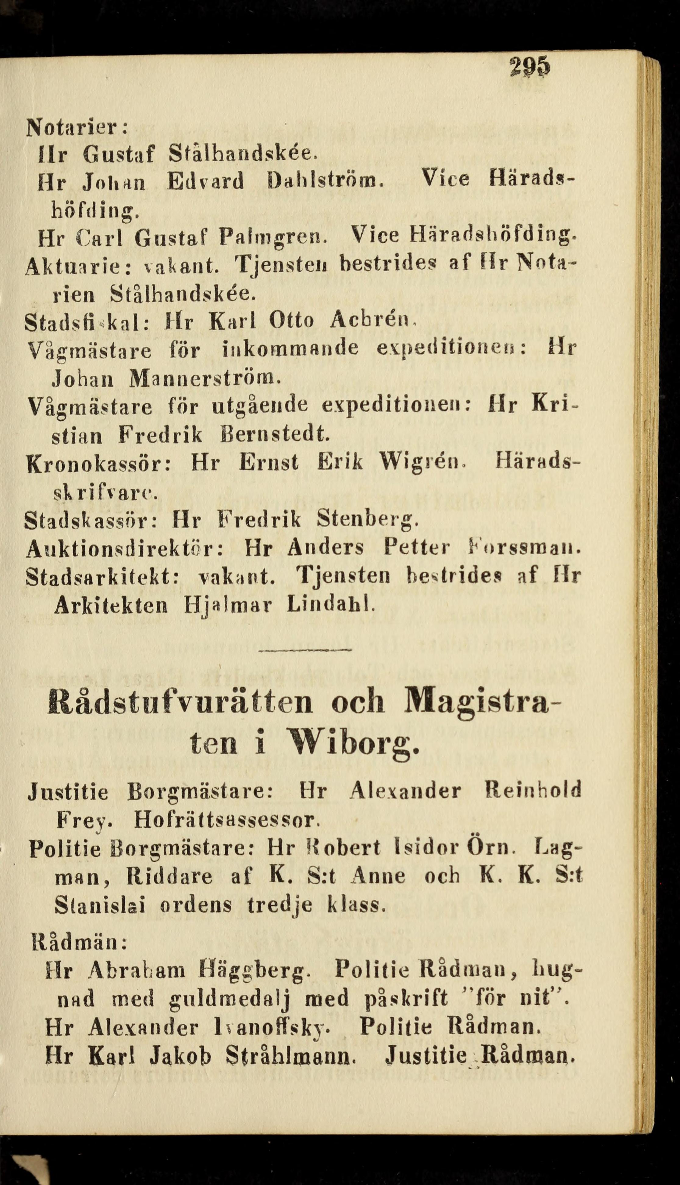 Politie Borgmästare: Hr ilobert Isidor Örn. Lag-