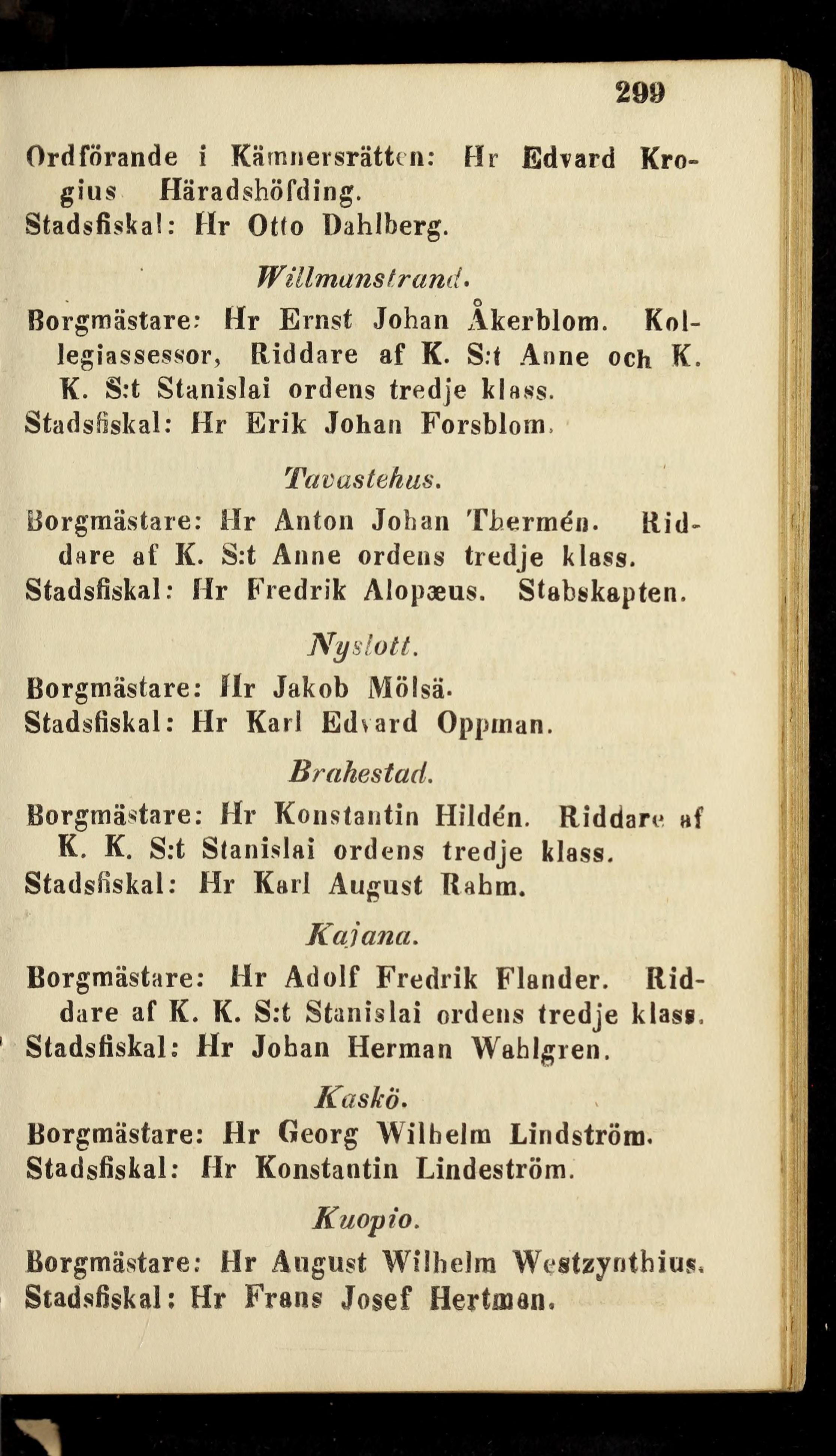 Borgmästare; Hr Adolf Fredrik Flander. Rid-