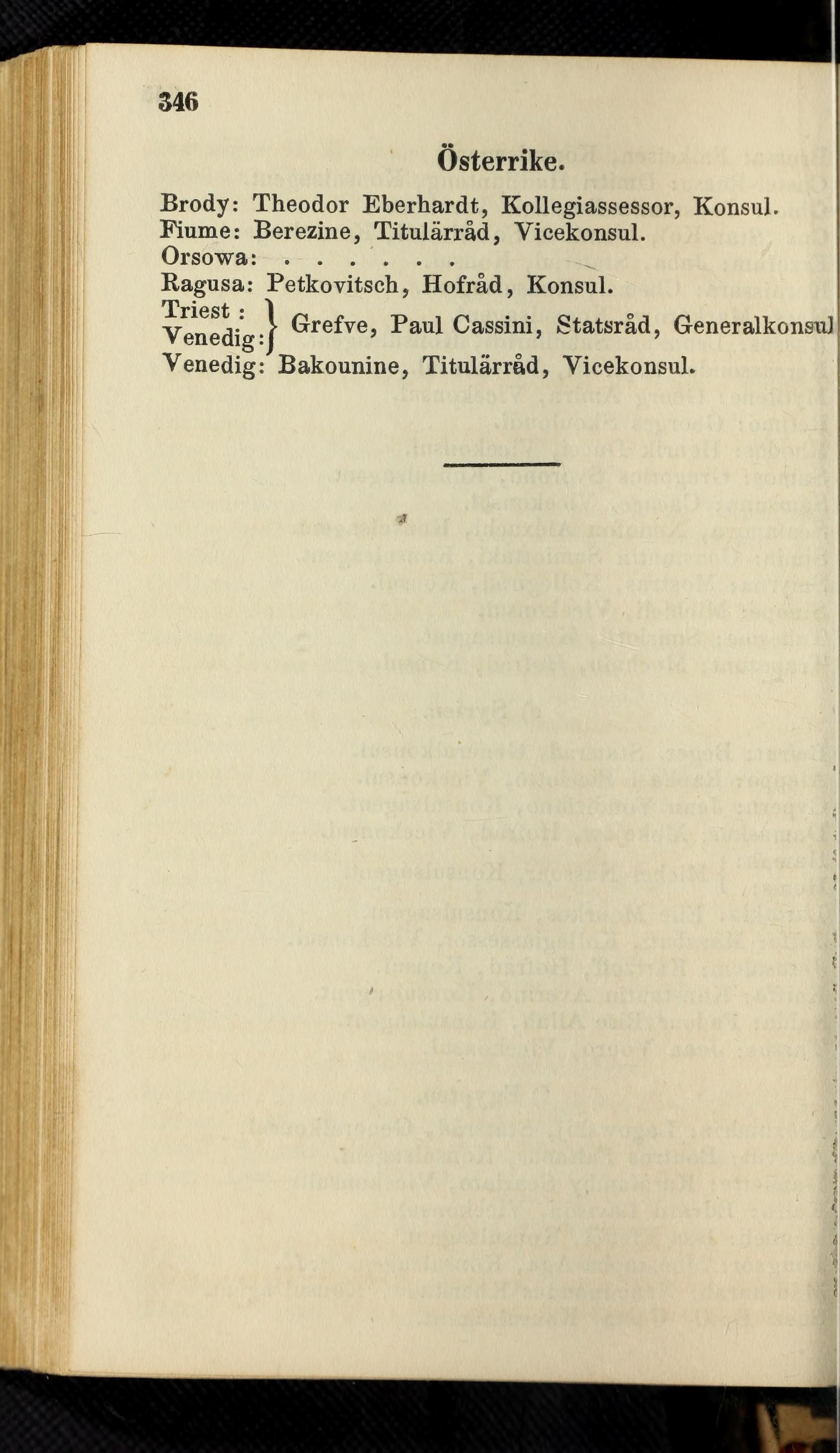Venedig: Bakounine, Titulärråd, Vicekonsul.