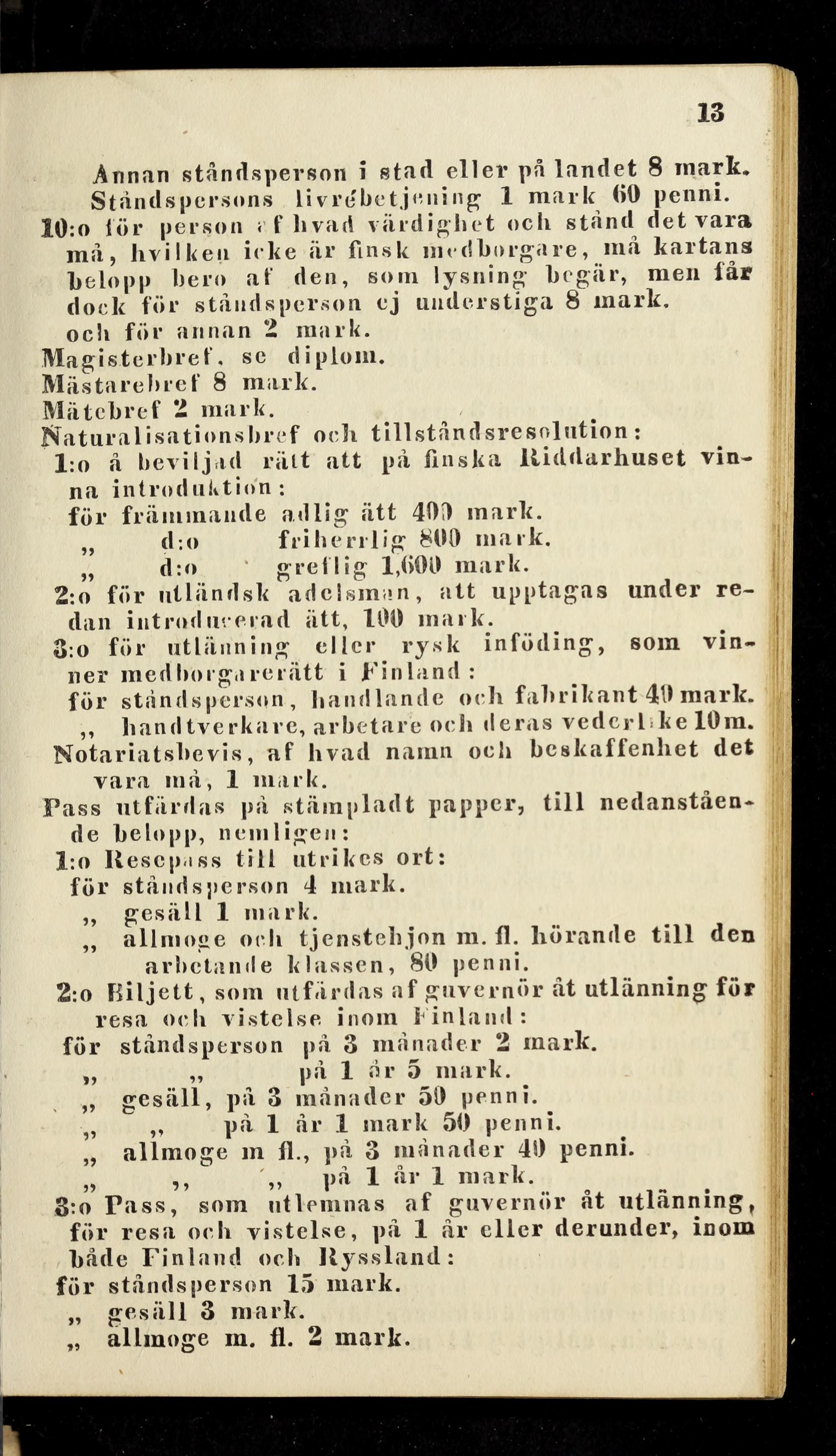 Ståndspersons li vrebetjening^ 1 mark (>0 penni. i,