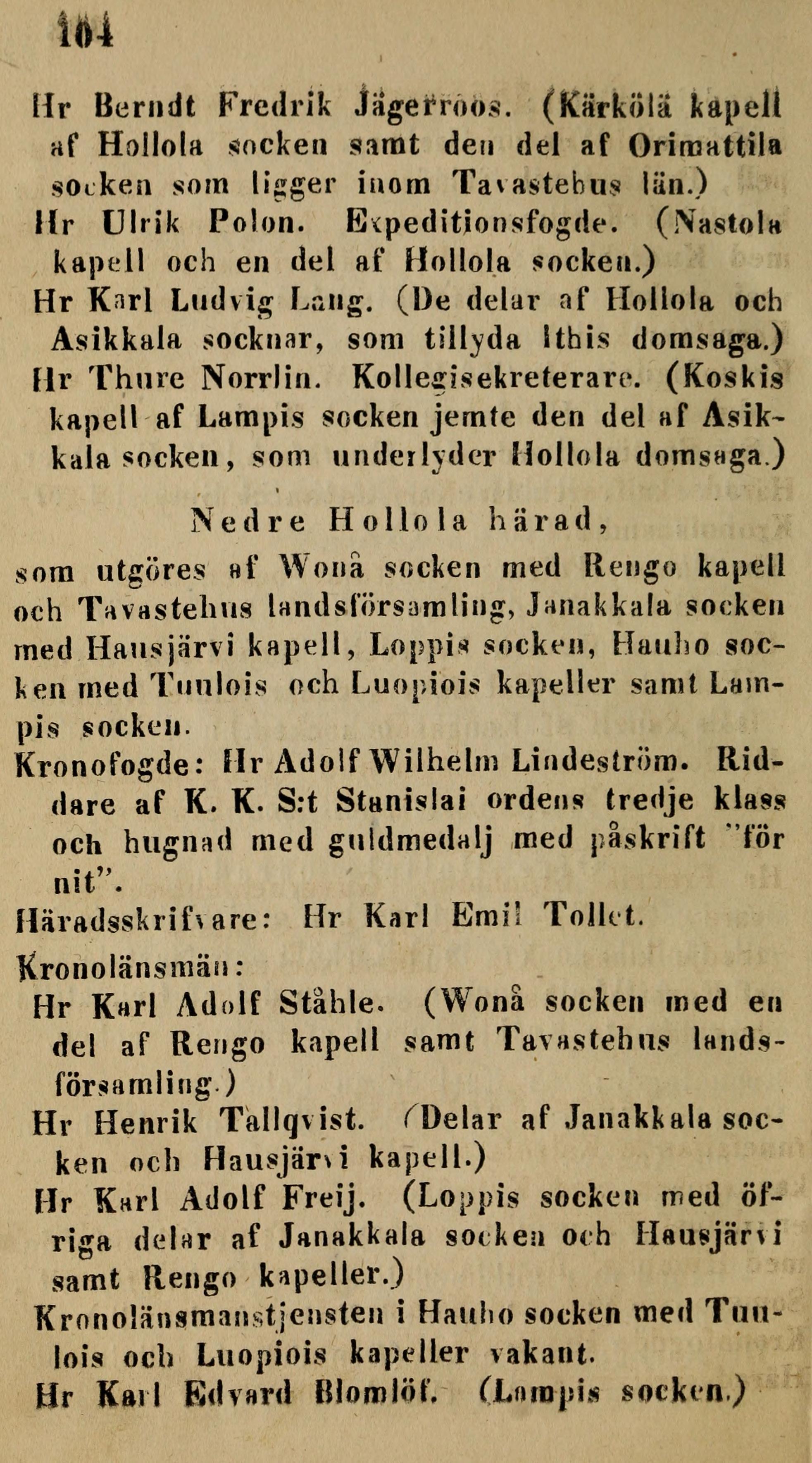 Kronofogde: Hr Adolf Wilhelm Lindeström. Rid-