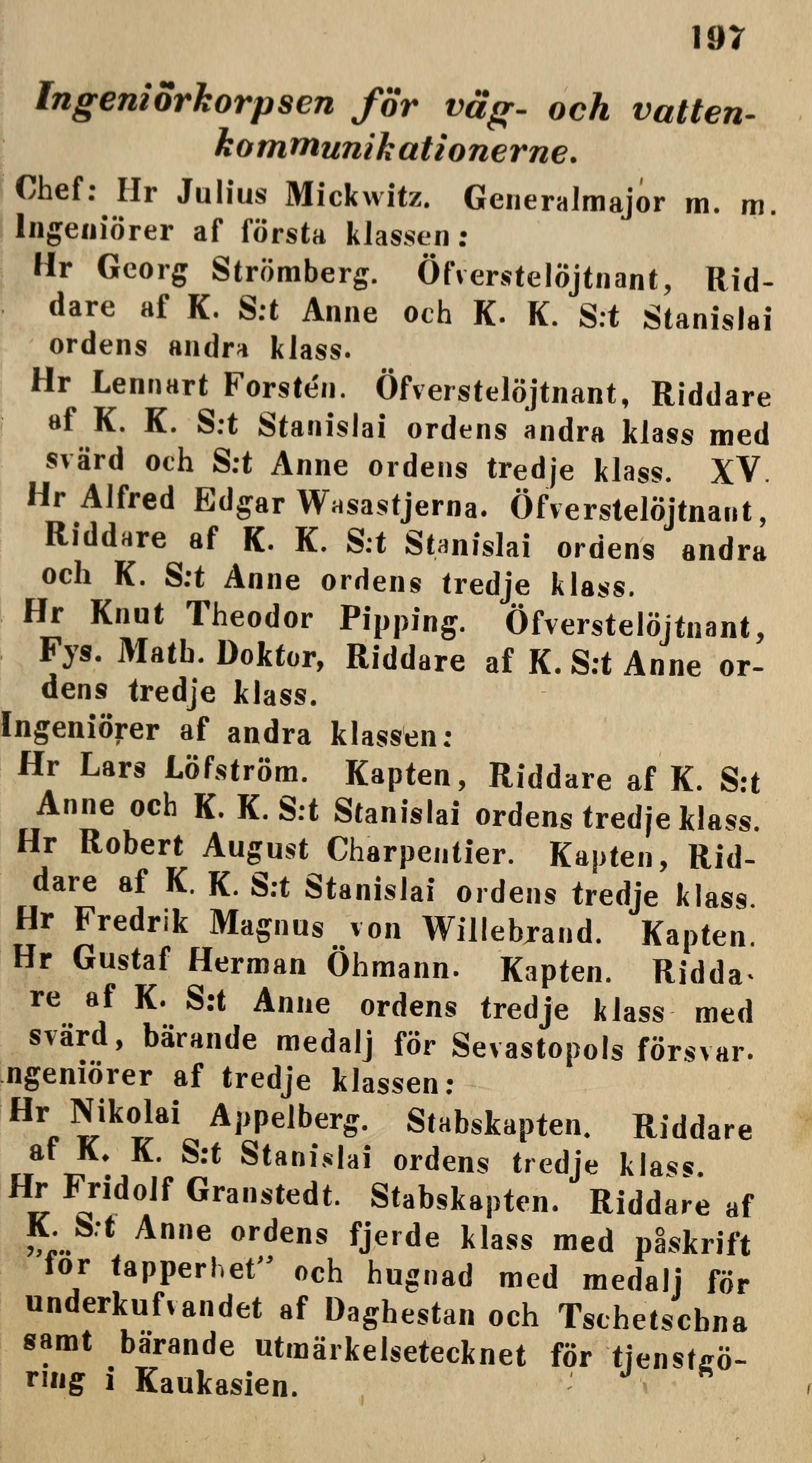 Hr Nikolai Appelberg. Stabskapten. Riddare