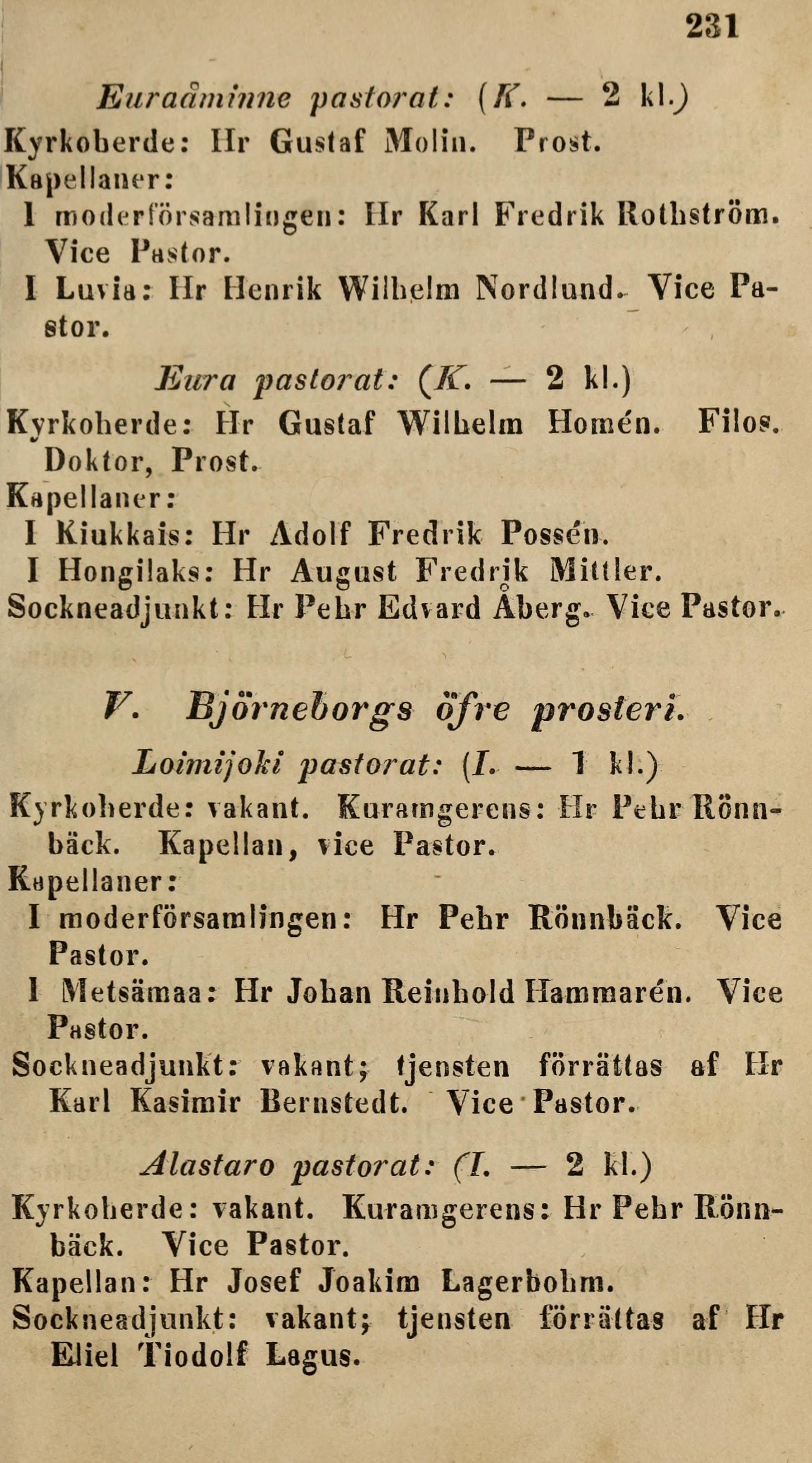 Kyrkoherde: vakant. Kuramgerens: Hr Pehr Rönn-