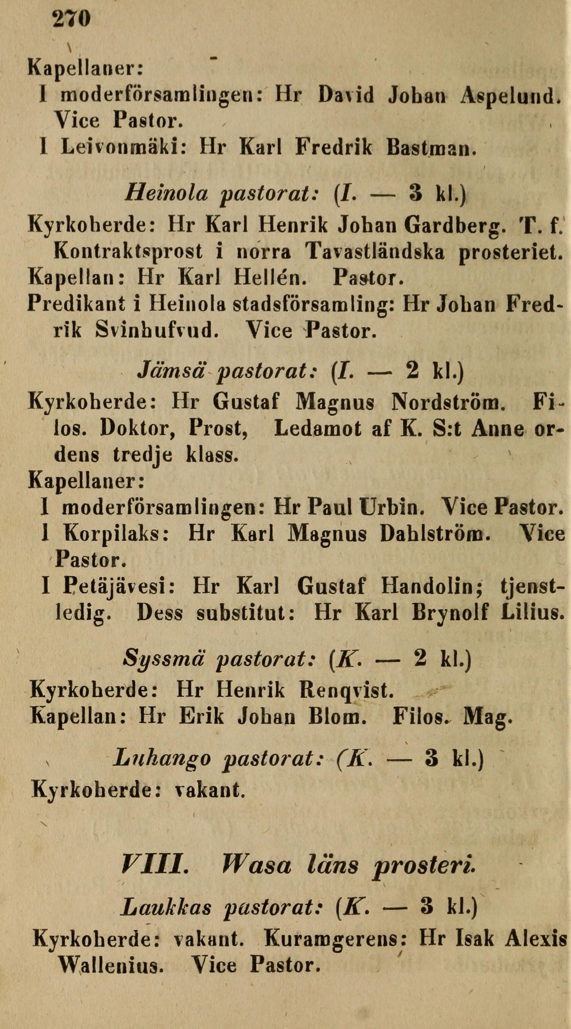 VIII. Wasa läns prosteri.
