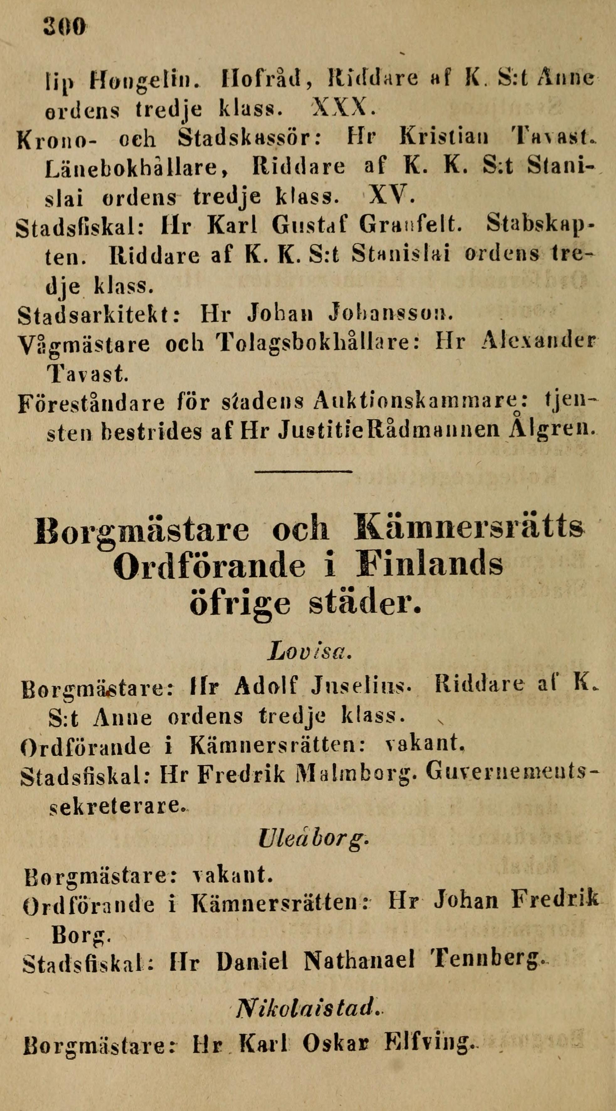 Borgmästare: Ifr Adolf Juseliiis. Riddare af K.