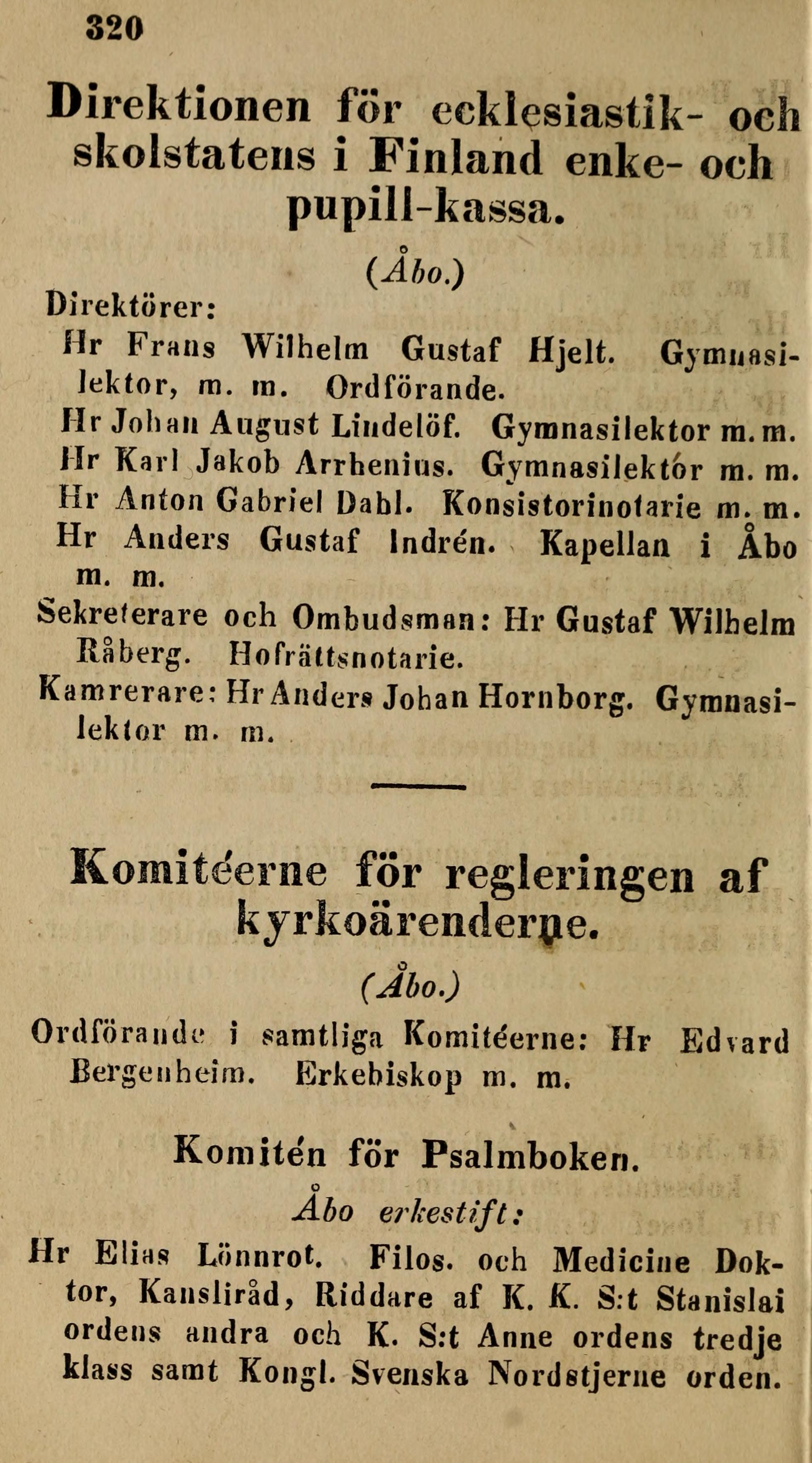 Ordförande i samtliga Komitéerne; Hr Edvard