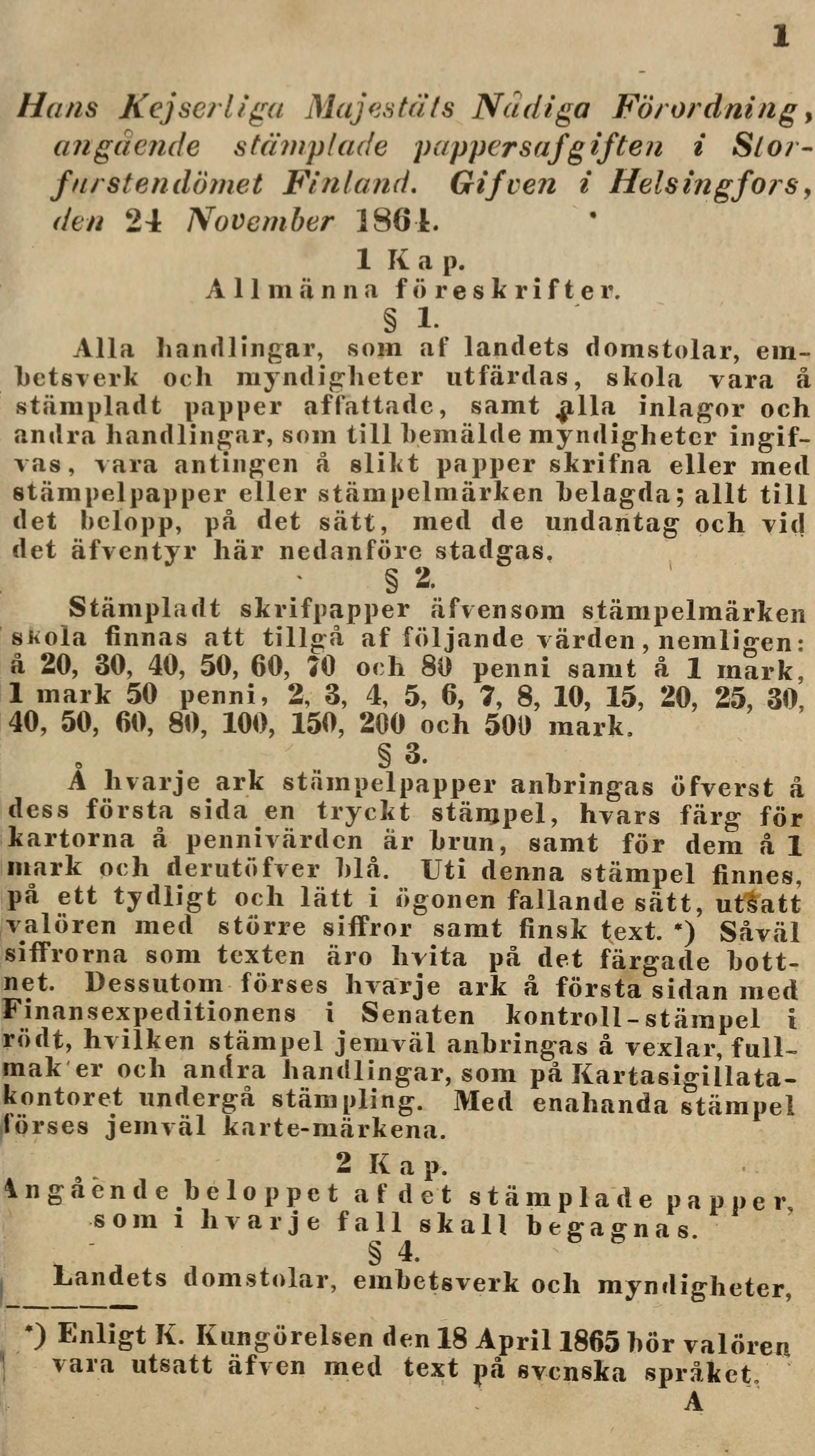 fnrstendömet Finland, Gifven i Helsingfors ,