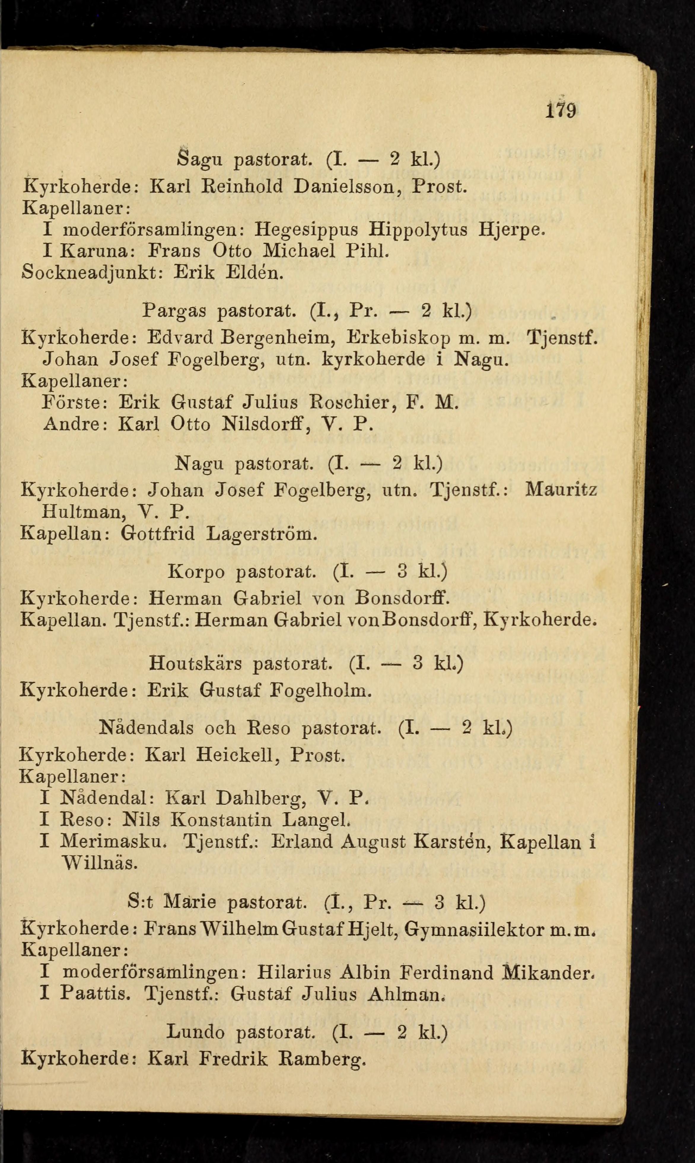 I Merimasku. Tjenstf.: Erland August Karsten, Kapellan i