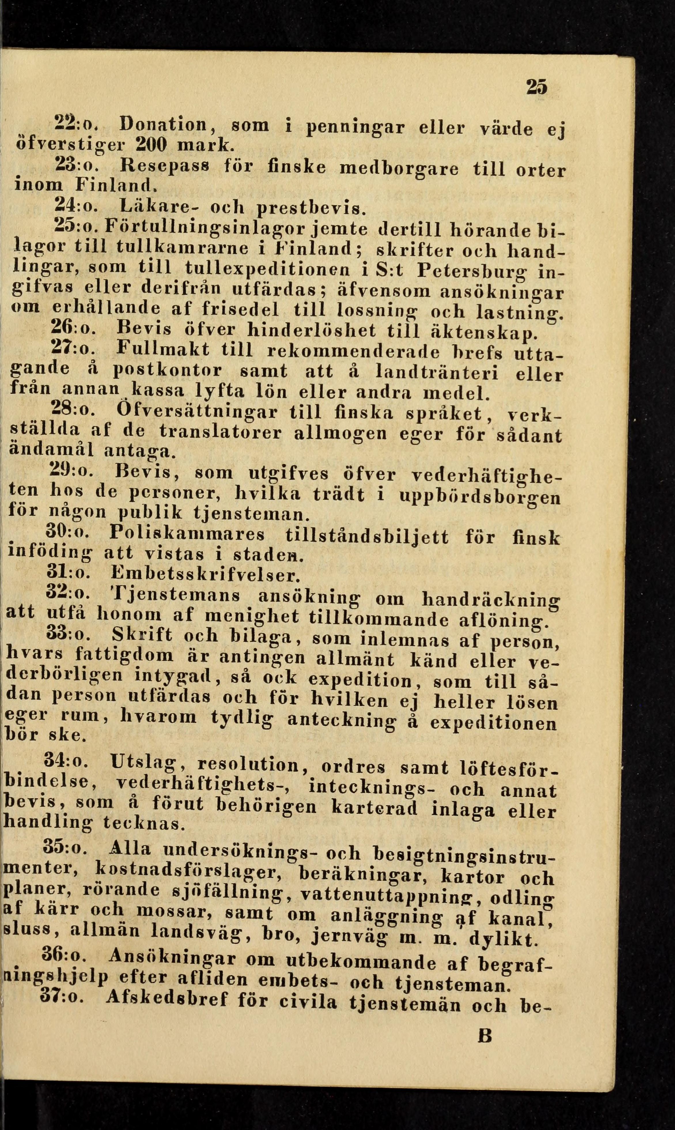 25:o. Förtullningsinlagor jemte dertill hörande bi-