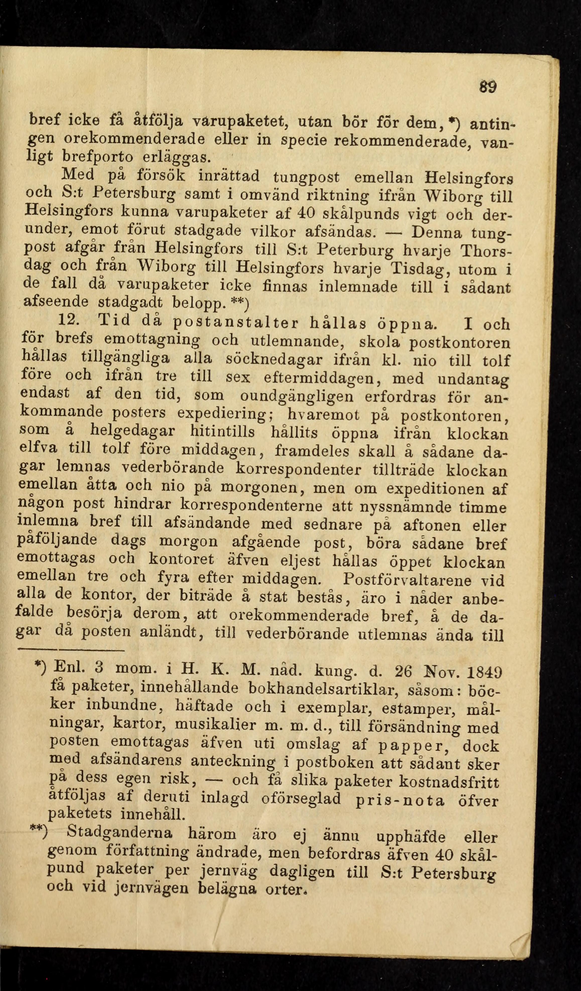 bref icke få åtfölja varupaketet, utan bör för dem,*) antin-
